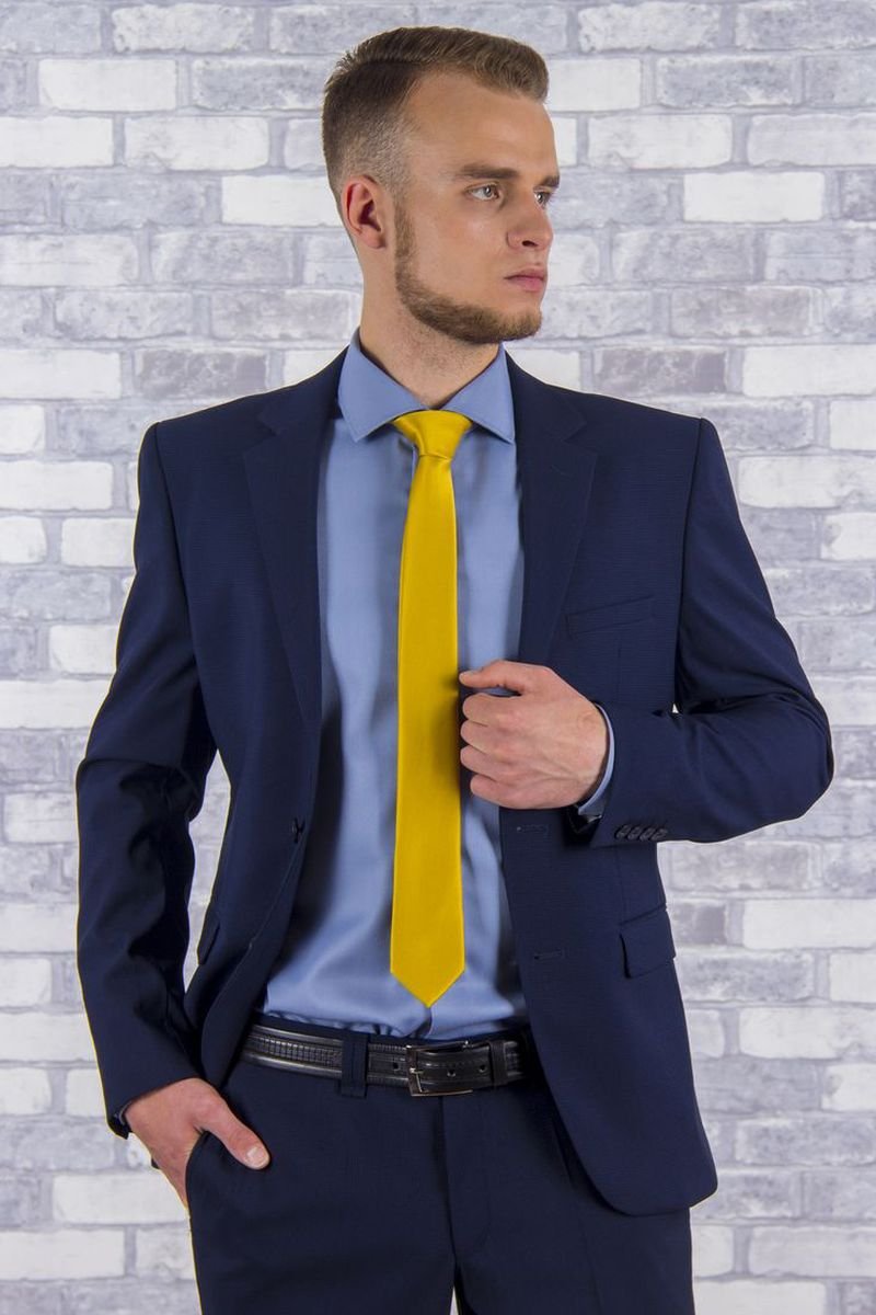 - Μπλε. Ένα από τα πιο δημοφιλή πουκάμισα είναι ένα ευχάριστο μπλε χρώμα. Με βάση αυτά τα πράγματα, οι γραβάτες σε κόκκινες, κίτρινες ή πράσινες αποχρώσεις φαίνονται ιδιαίτερα ελκυστικές. Αυτοί είναι οι βέλτιστοι συνδυασμοί χρωμάτων για την εμφάνιση των νέων.