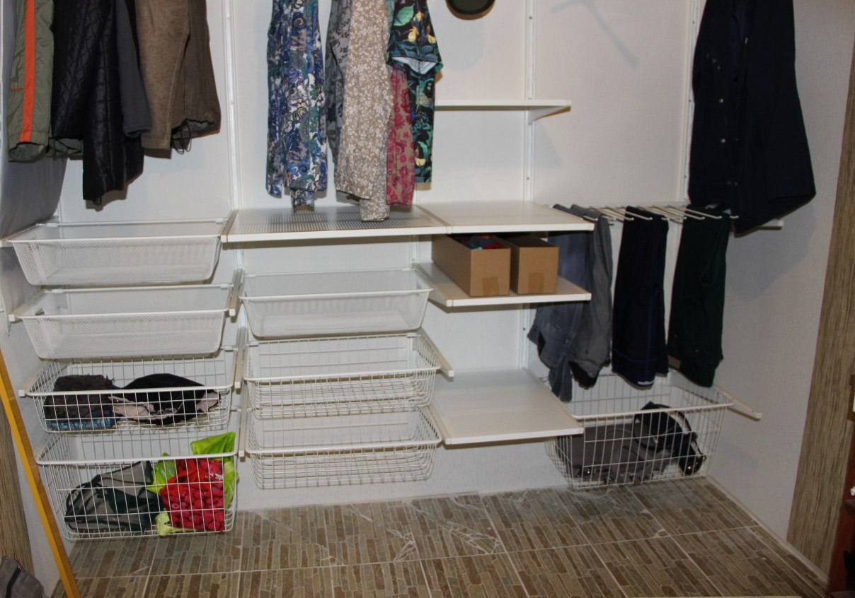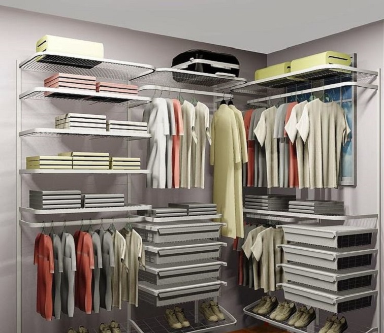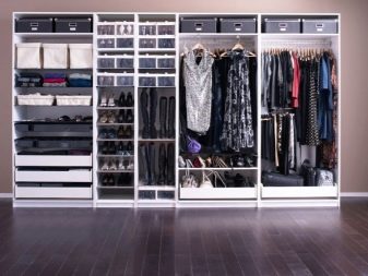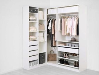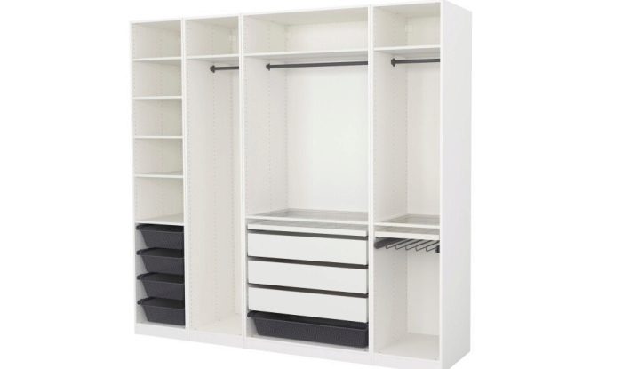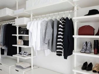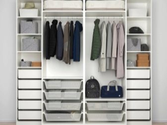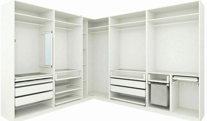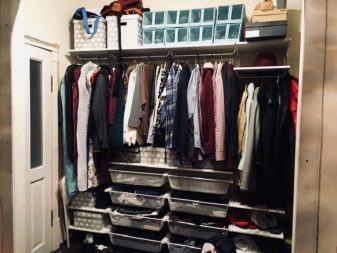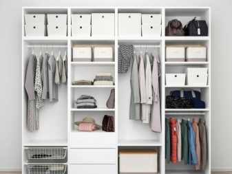 Σε όλα αυτά, συνδέονται επιπλέον συνδετήρες, με τη βοήθεια των οποίων εγκαθίστανται τα μέρη. Αυτό είναι σημαντικό για εξοικονόμηση χώρου. Ετσι, οποιοδήποτε άτομο μπορεί να τοποθετήσει την γκαρνταρόμπα του με τέτοιο τρόπο και με τη μορφή με την οποία θα είναι πιο βολικό για αυτόν με βάση τη γεωμετρία του δωματίου. Για παράδειγμα, μπορείτε να απαλλαγείτε από το κάτω μέρος του ντουλαπιού και να στερεώσετε όλα τα ράφια στον τοίχο.