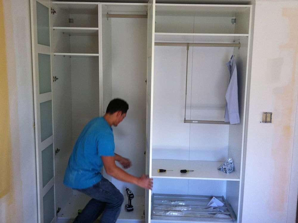 - Εάν η δομή χωρίζεται σε πολλά ντουλάπια, τότε τα συνδέουμε μεταξύ τους και τα στερεώνουμε.