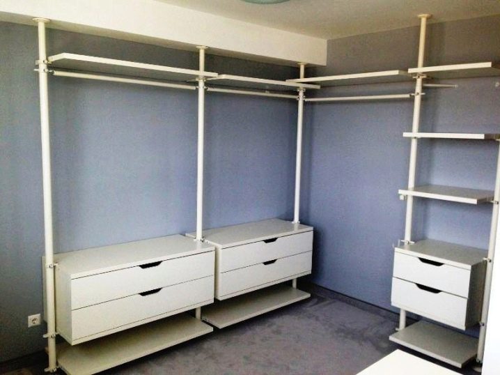 Η βάση αποτελείται από μεταλλικούς σωλήνες που είναι προσαρτημένοι στο πάτωμα και στην οροφή. Σε αυτή την περίπτωση, η απόσταση μεταξύ τους καθορίζεται από τον ίδιο τον ιδιοκτήτη. Μια ποικιλία εξαρτημάτων μπορεί να τοποθετηθεί μεταξύ τέτοιων σωλήνων: ράφια, κρεμάστρες, καλάθια.