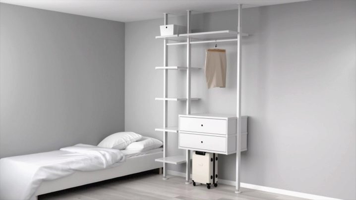Ένα από τα πιο σημαντικά χαρακτηριστικά του συστήματος "Algot" είναι ο σχεδιασμός που σας επιτρέπει να τοποθετήσετε αυτά τα έπιπλα σε ένα δωμάτιο οποιουδήποτε μεγέθους. Εκτός, είναι σημαντικό να σημειωθεί ότι το μοντέλο Algot ανήκει στην κατηγορία των ενσωματωμένων ντουλαπιών, αλλά όχι πολύ συνηθισμένων - δεν έχουν πόρτες και, γενικά, το σώμα ως τέτοιο.
