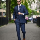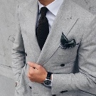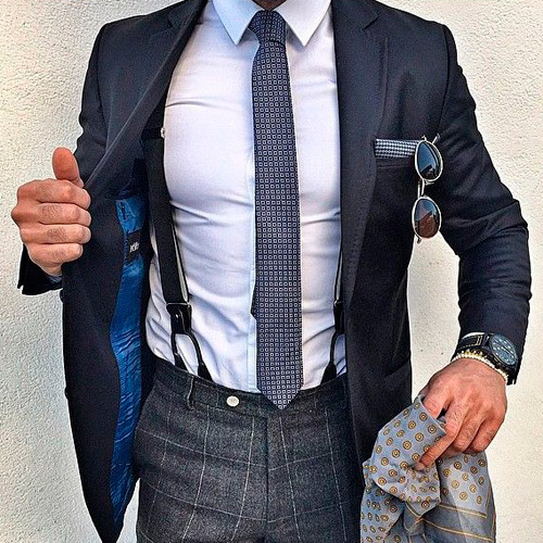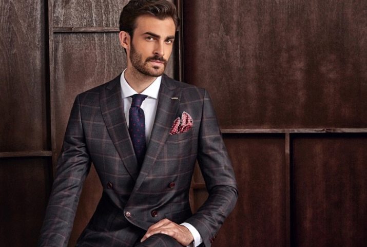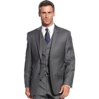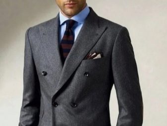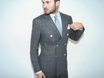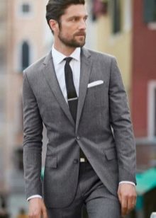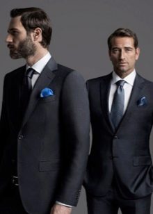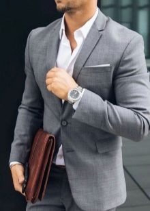 - Ένα σετ σακάκι με διπλό στήθος, μονό στήθος και παντελόνι. Διαφέρουν μόνο στον αριθμό των κουμπιών και μπορούν να αντιστοιχιστούν με ένα συγκεκριμένο σχήμα. Ένα μακρύ μπλουζάκι με διπλό στήθος είναι ιδανικό για ψηλούς άνδρες με μακριά πόδια, ωστόσο, ένα κοστούμι με ένα στήθος με μακρύ χιτώνα θα φαίνεται επίσης κομψό πάνω τους.