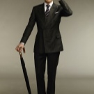 - ένα κοστούμι με στυλ σακάκι με διπλό στήθος, κατάλληλο κυρίως για λεπτούς άνδρες.