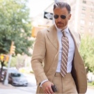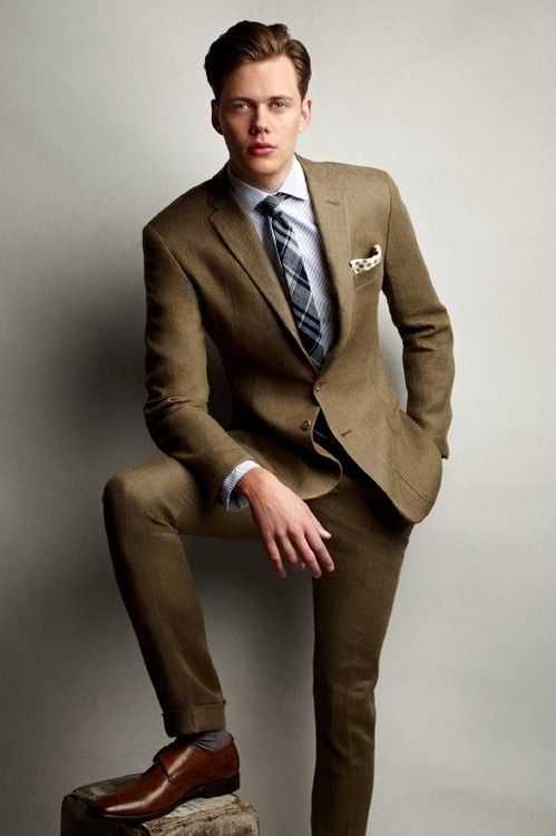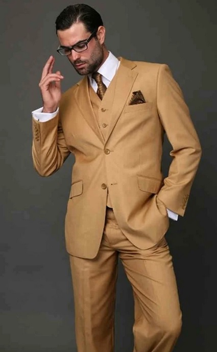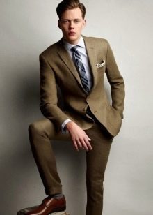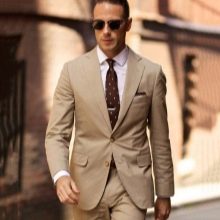 - Σκούρο μπεζ αρκετά δημοφιλές. Ο βαθύ καφέ τόνος απαλύνει την επίσημη λιτότητα του κλασικού ανδρικού κοστουμιού, αλλά το πρόβλημα είναι ότι το χρώμα δεν ταιριάζει σε όλους.
