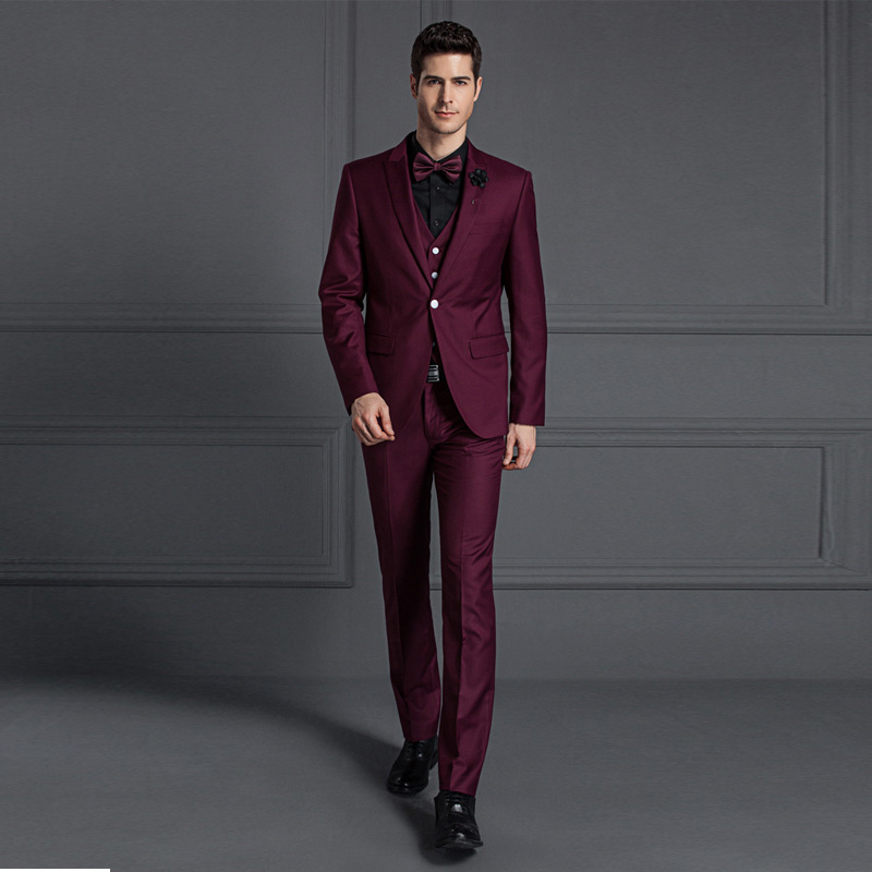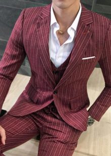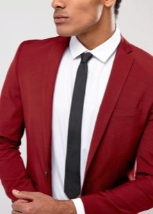 Ένα κοστούμι σε σκούρο κόκκινο χρώμα θα είναι μια εξαιρετική επιλογή για γάμο ή άλλη γιορτή. Και μια πεταλούδα της ίδιας σκιάς θα αραιώσει την εικόνα και θα την κάνει πιο ενδιαφέρουσα.