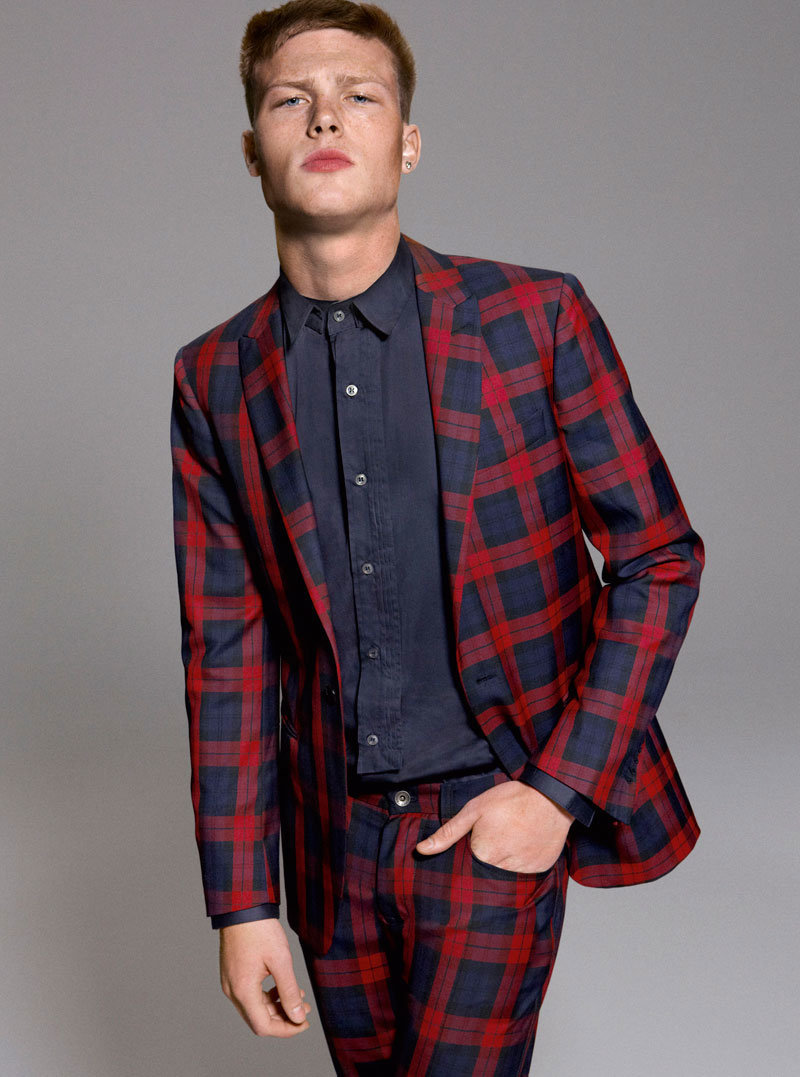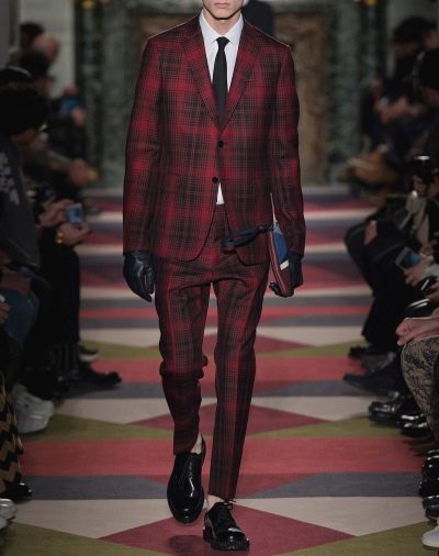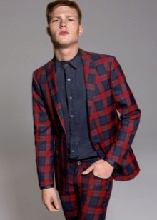 Ένα κοστούμι σε μαύρο και κόκκινο κλουβί φαίνεται ασυνήθιστο. Θα συμπληρωθεί τέλεια με ένα λευκό πουκάμισο και μαύρα αξεσουάρ.