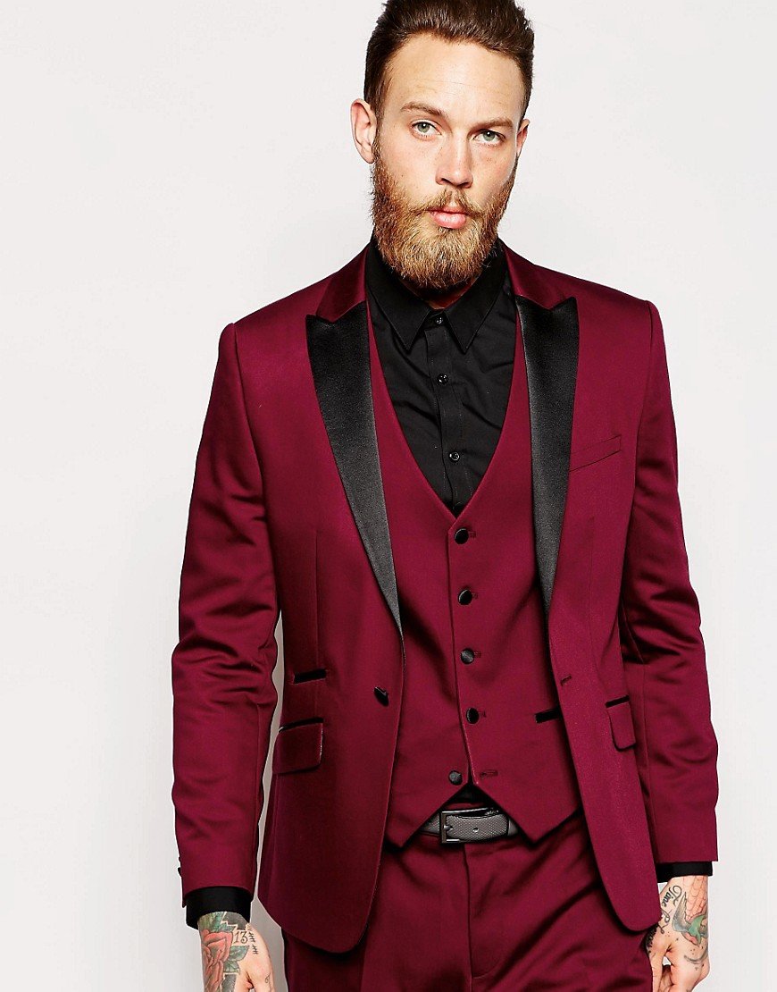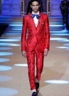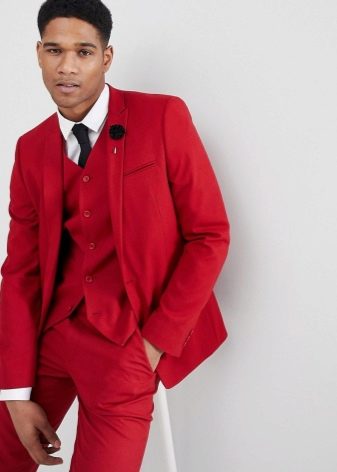 - Σκούρα κόκκινα και κόκκινα και μαύρα κοστούμια θα κοσμούν την εικόνα ενός ενήλικα και πλούσιου άντρα. Μπορούν να χρησιμοποιηθούν τόσο για επαγγελματική όσο και για εορταστική εμφάνιση.