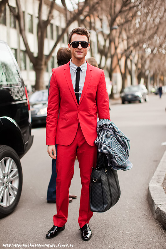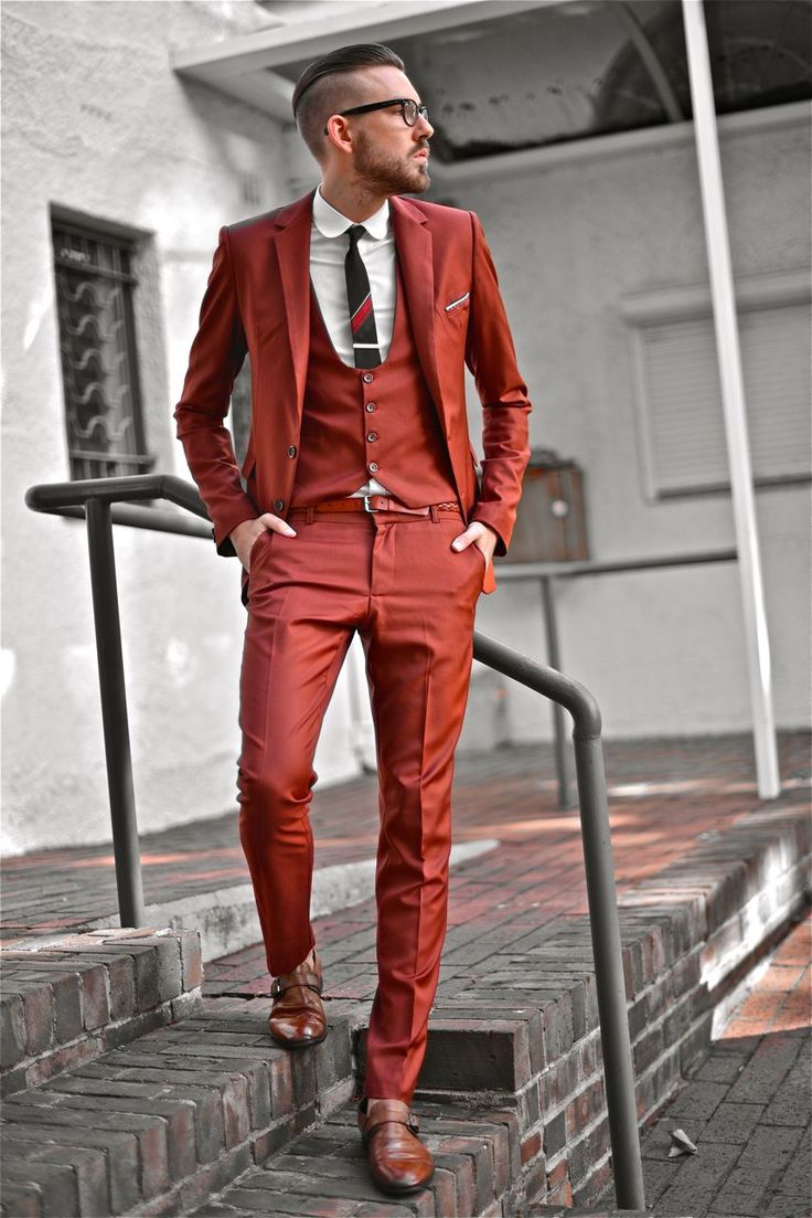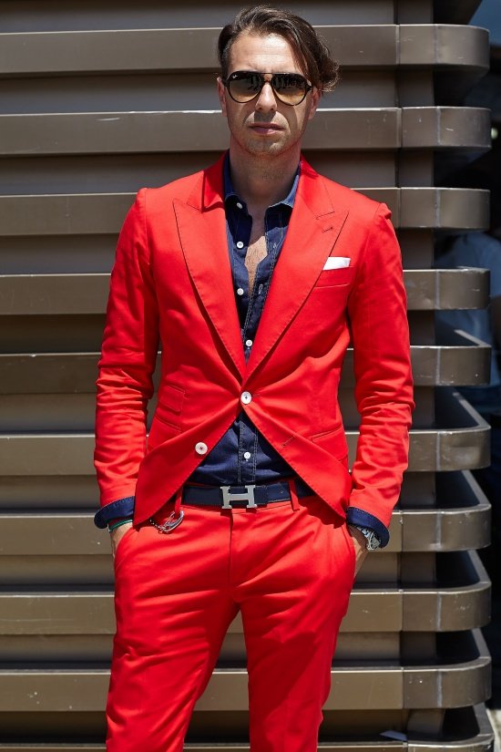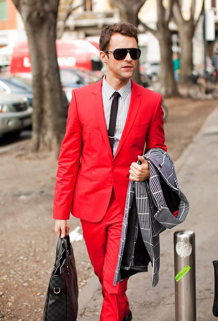 Προηγουμένως, το κόκκινο κοστούμι χρησιμοποιούνταν αποκλειστικά σε κοινωνικές εκδηλώσεις, αλλά σήμερα χρησιμοποιείται για τη δημιουργία casual και επαγγελματικών εμφανίσεων. Το κόκκινο έχει πολλές αποχρώσεις, καθιστώντας το ευέλικτο. Τα φωτεινά ρούχα μεταμορφώνουν σημαντικά τις βραδινές, επαγγελματικές και εορταστικές εμφανίσεις. Ανάλογα με το πού σκοπεύετε να πάτε με ένα κοστούμι, επιλέγεται η απόχρωση και το στυλ του.