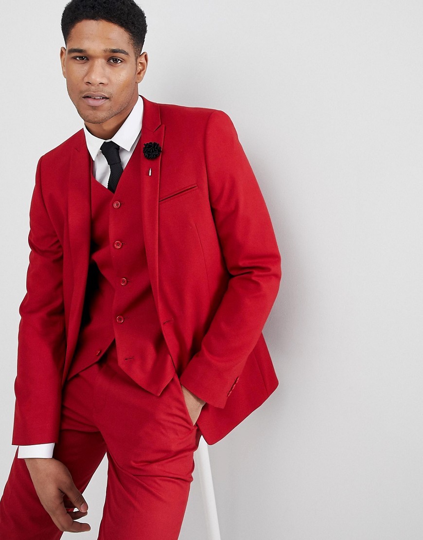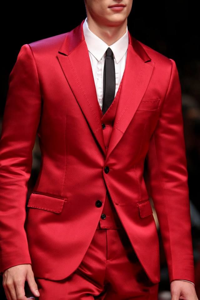 Το κόκκινο θεωρείται αρσενικό στην ανατολική κουλτούρα. Αυτό οφείλεται στο γεγονός ότι το χρώμα προσωποποιεί το θάρρος, τη δύναμη και τη διεκδίκηση, τα οποία θεωρούνται αποκλειστικά αντρικά χαρακτηριστικά. Ένα κοστούμι αυτού του χρώματος δεν θα φαίνεται κατάλληλο σε όλες τις εκδηλώσεις. Δεν πρέπει να χρησιμοποιείται για εργασία, αλλά η σκούρα κόκκινη επιλογή είναι ιδανική για επαγγελματικές συναντήσεις.