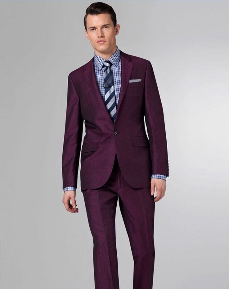 Τα μοντέλα σε έντονα χρώματα δεν είναι κατάλληλα για επίσημες εκδηλώσεις, αλλά ιδανικά για ανεπίσημες και ειδικές περιστάσεις. Μπορείτε να ντύσετε έναν γαμπρό ή έναν μάρτυρα με ένα τέτοιο κοστούμι. Ωστόσο, οι στιλίστες δεν συμβουλεύουν τους καλεσμένους του γάμου να επιλέξουν ένα τόσο φωτεινό χρώμα, καθώς αυτό θα αποσπάσει την προσοχή από τους κύριους ενόχους της εκδήλωσης.