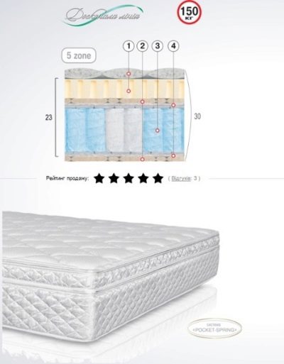 Ένα ασυνήθιστο μοντέλο μεταξύ της γκάμας Lazurit, καθώς έχει ένα χαρακτηριστικό, που είναι η μεσαία σταθερότητα, επειδή είναι υψηλό σε άλλα στρώματα. Ο κατασκευαστής σε αυτό το προϊόν ήθελε να επιτύχει την πιο άνετη ισορροπία ομαλότητας και απαλότητας εξοπλίζοντας διάφορες θήκες με πλαστικά ελατήρια στις θήκες. Έτσι δεν θα αγγίζουν το ένα το άλλο και θα μπορούν να κατανέμουν το φορτίο σε όλο το στρώμα. Το μπλοκ περιλαμβάνει επίσης πλάκες καρύδας, λόγω των οποίων εξασφαλίζεται η αντοχή ολόκληρης της δομής.