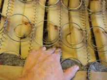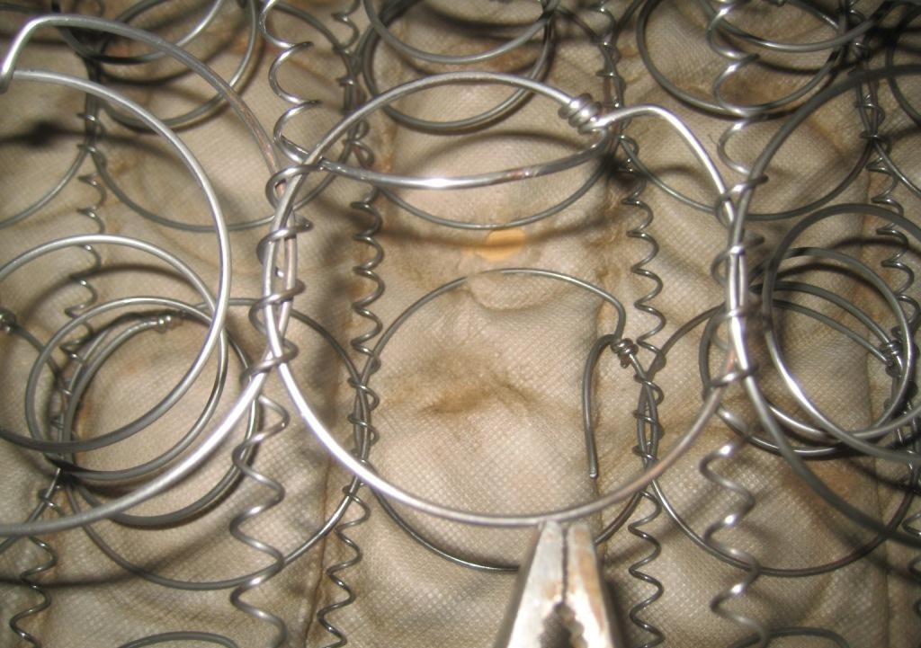 - Μετακινήστε τις σανίδες στο πλάι, αφήνοντας τα μεταλλικά ελατήρια. Αυτά που έχουν χάσει το σχήμα τους και έχουν σπάσει θα πρέπει να αντικατασταθούν πλήρως ή να τυλιχτούν ξανά.