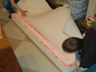 Στο τελευταίο στάδιο, το στρώμα είναι επικαλυμμένο με ένα πυκνό ύφασμα. Τεντώστε το, ξεκινώντας από τις άκρες. Ο κύριος βοηθός στο έργο είναι ένα συρραπτικό κατασκευής. Είναι σημαντικό να διασφαλιστεί ότι οι άκρες του συγκρατητήρα δεν δείχνουν προς τα πάνω.