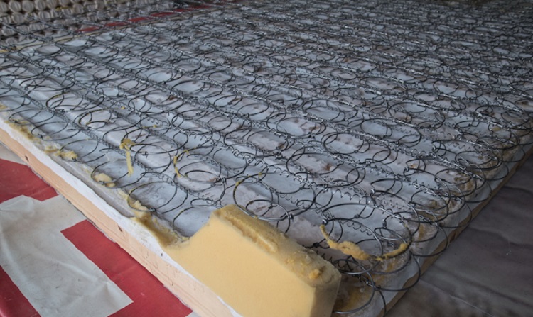 Όταν το μπλοκ ελατηρίου επισκευαστεί πλήρως, πρώτα εφαρμόζεται ένα υλικό επένδυσης σε αυτό, και στη συνέχεια ένα στρώμα στεγανωτικού. Το τελευταίο είναι στερεωμένο με αγκύλες σε ξύλινη βάση.