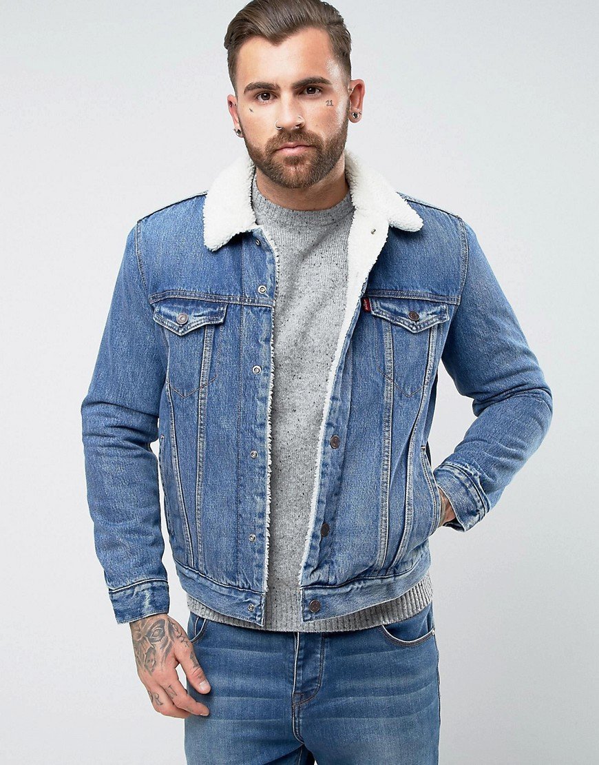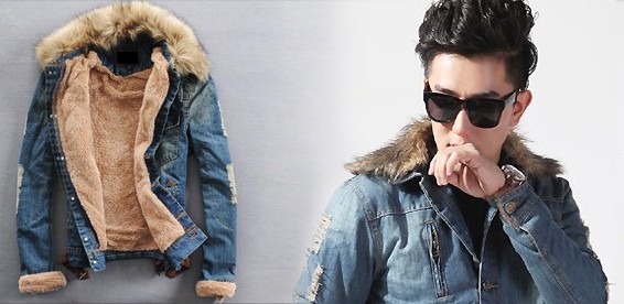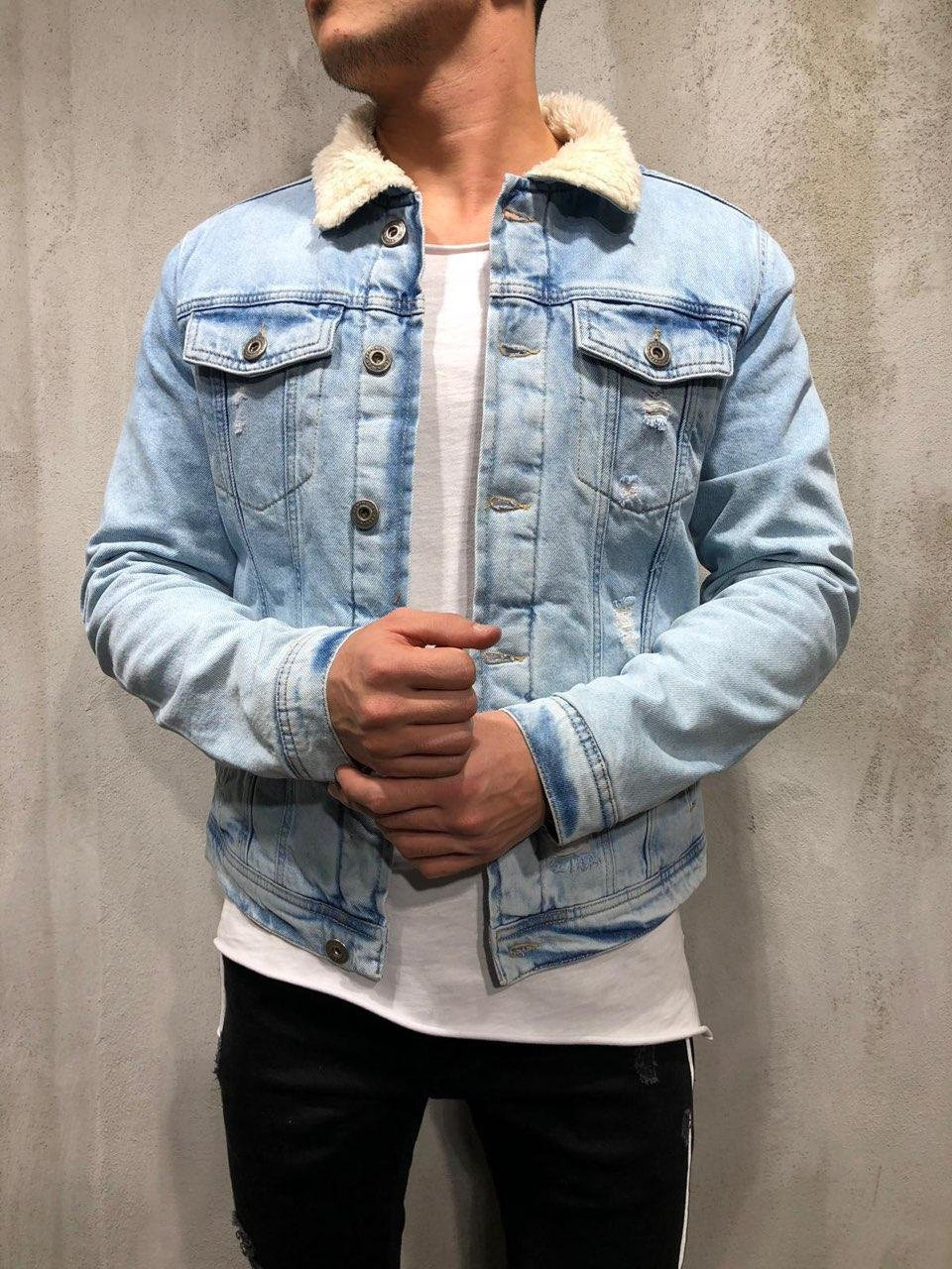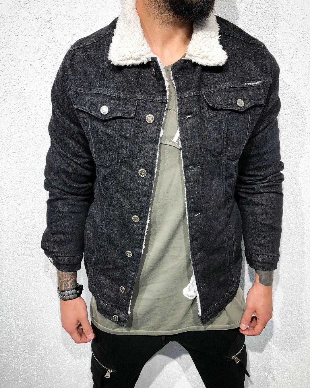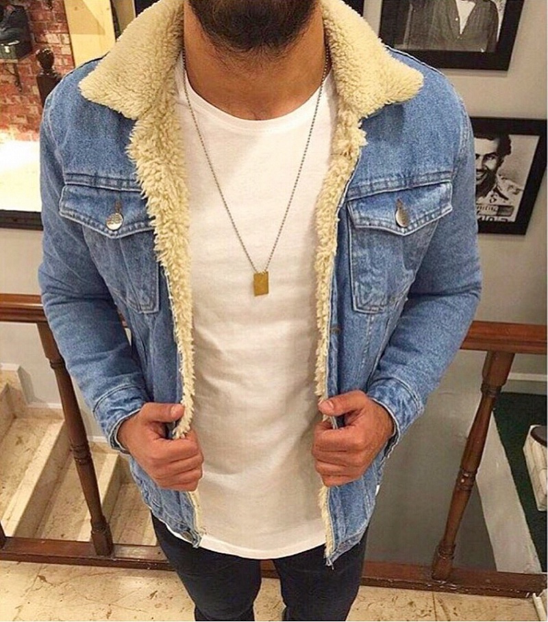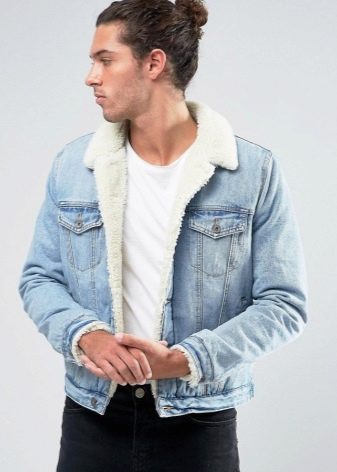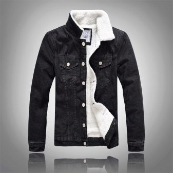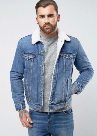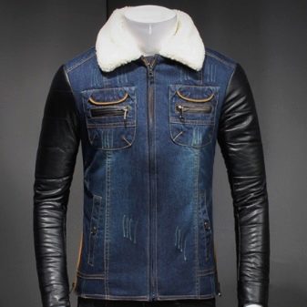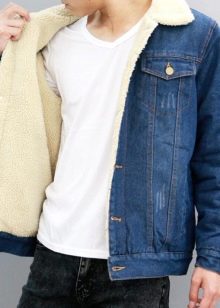 Ένα τζιν μπουφάν με δέρμα προβάτου αξίζει ιδιαίτερη προσοχή, κατάλληλο για άνδρες οποιασδήποτε ηλικίας. Μπορεί να φορεθεί μέχρι την έναρξη του έντονου κρύου καιρού, μερικοί τύποι καταφέρνουν να το χρησιμοποιούν ως εξωτερικά ρούχα όλο το χειμώνα.