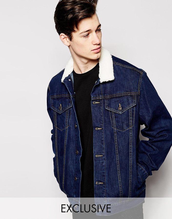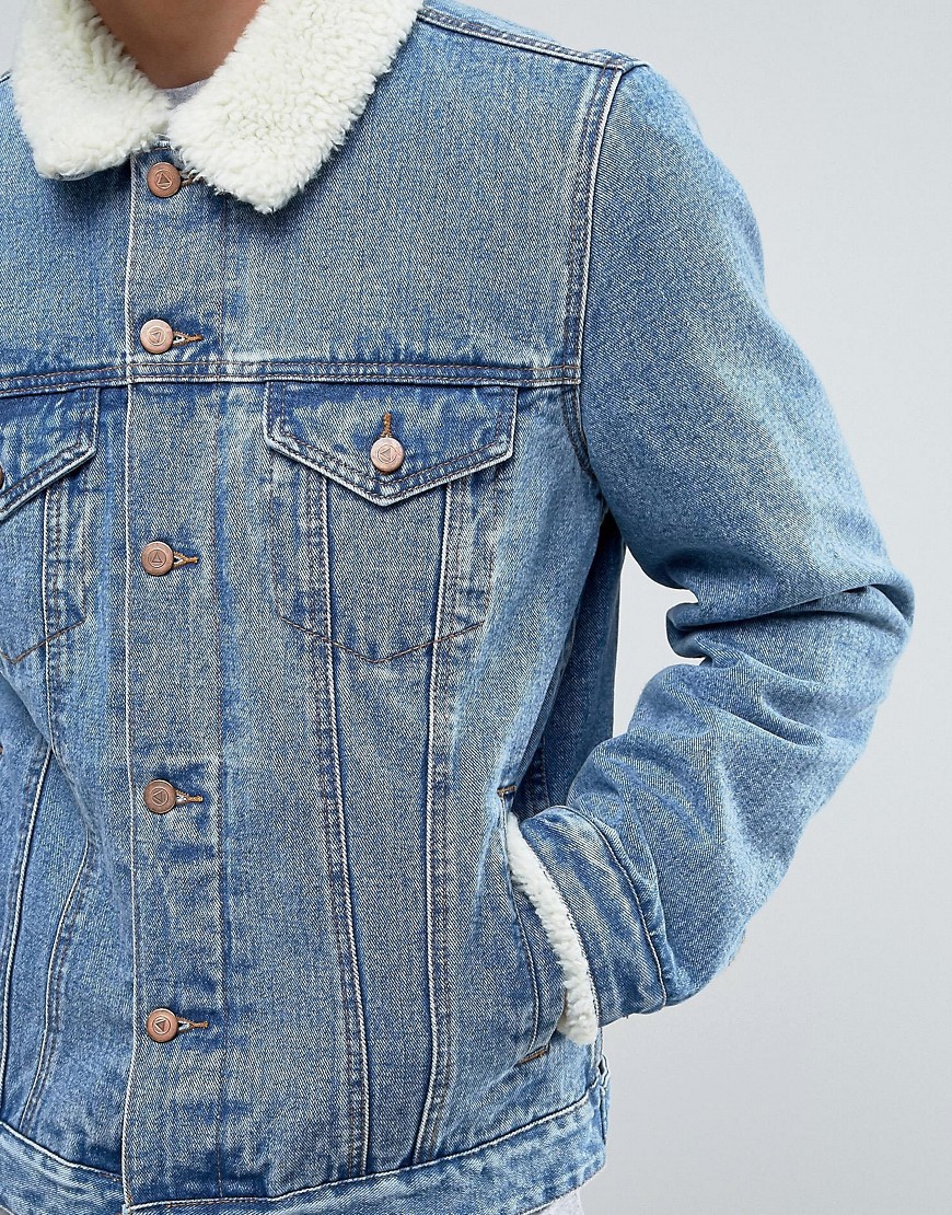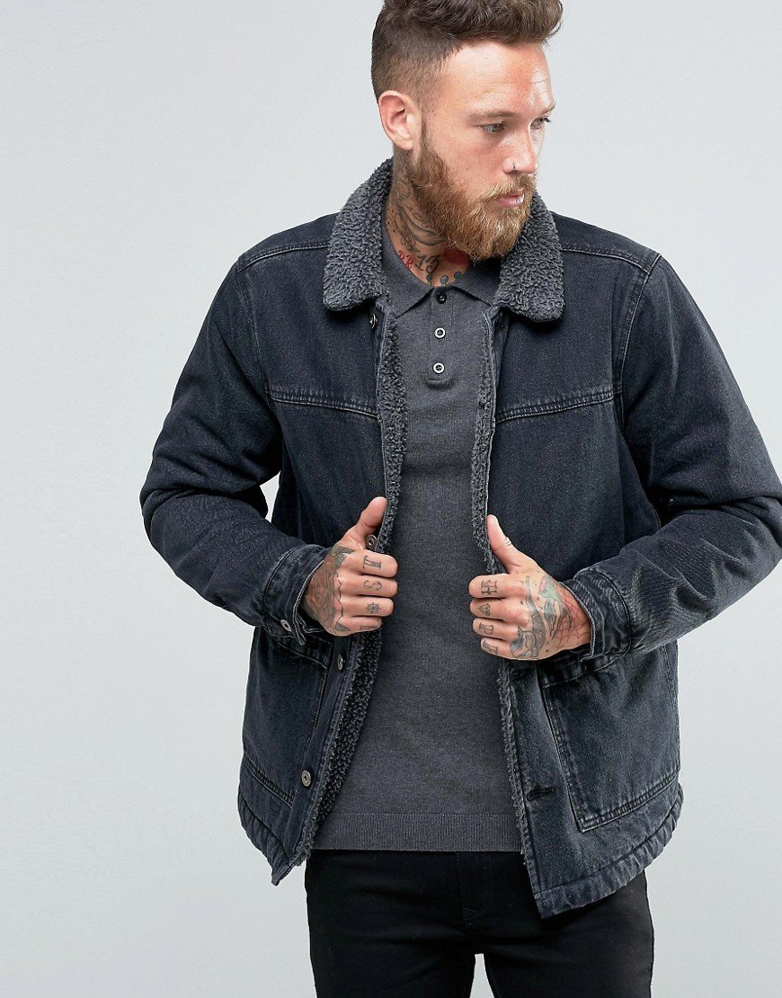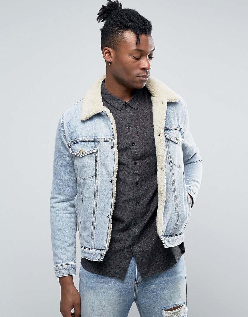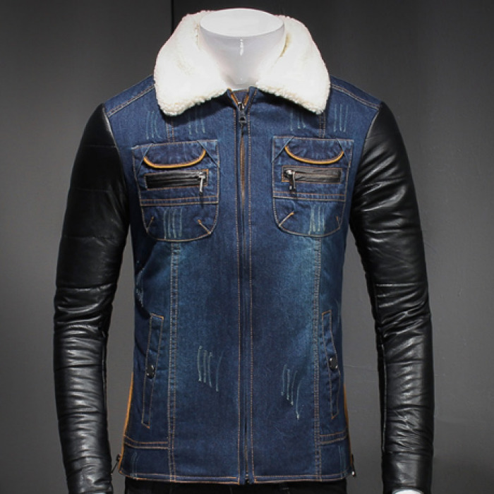 Ένα τζιν μπουφάν με δέρμα προβάτου αξίζει ιδιαίτερη προσοχή, κατάλληλο για άνδρες οποιασδήποτε ηλικίας. Μπορεί να φορεθεί μέχρι την έναρξη του έντονου κρύου καιρού, μερικοί τύποι καταφέρνουν να το χρησιμοποιούν ως εξωτερικά ρούχα όλο το χειμώνα.