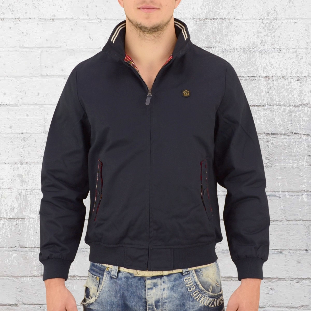 Κλασικό χρώμα σακάκι harrington - Ναυτικό μπλε. Είναι σε αυτόν που αυτό το στοιχείο της ανδρικής ντουλάπας παράγεται συχνότερα, ενώ το μαύρο θεωρείται ανεπαρκώς βρετανικό στη διάθεση. Αυτό το χρώμα εναρμονίζεται αποτελεσματικά με το κλουβί, αν φοράτε ένα σακάκι ορθάνοιχτο.