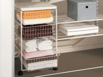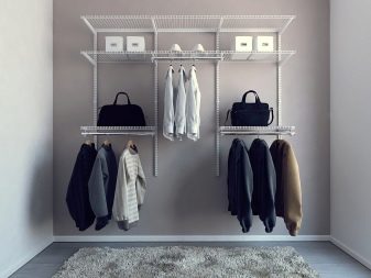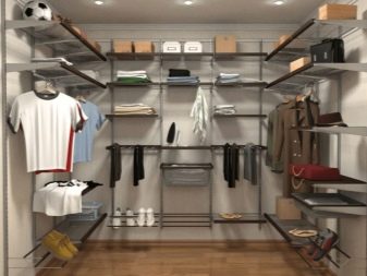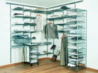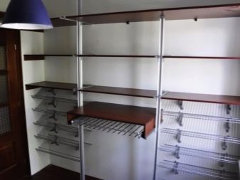 Για ντουλάπες με μεταλλικά ράφια, είναι χαρακτηριστικό ένας πιο συγκρατημένος και λιτός σχεδιασμός. Αυτές οι επιλογές είναι πολύ άνετες στη χρήση. Εδώ, τόσο τα δίχτυα όσο και τα δάπεδα μπορούν να στερεωθούν σε απολύτως οποιοδήποτε ύψος.