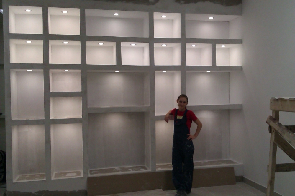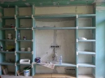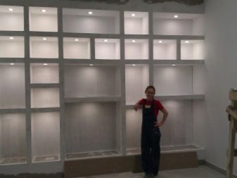 Οι κατασκευές από γυψοσανίδες μπορούν να έχουν οποιοδήποτε σχέδιο και οποιοδήποτε χρώμα. Για το φινίρισμα τέτοιων επιλογών, επιλέγονται συχνότερα πάνελ MDF ή μια ελκυστική μεμβράνη PVC. Τα ράφια από γυψοσανίδες δεν είναι πολύ βαριά, μπορούν να διατηρήσουν την αρχική τους εμφάνιση για πολύ μεγάλο χρονικό διάστημα.