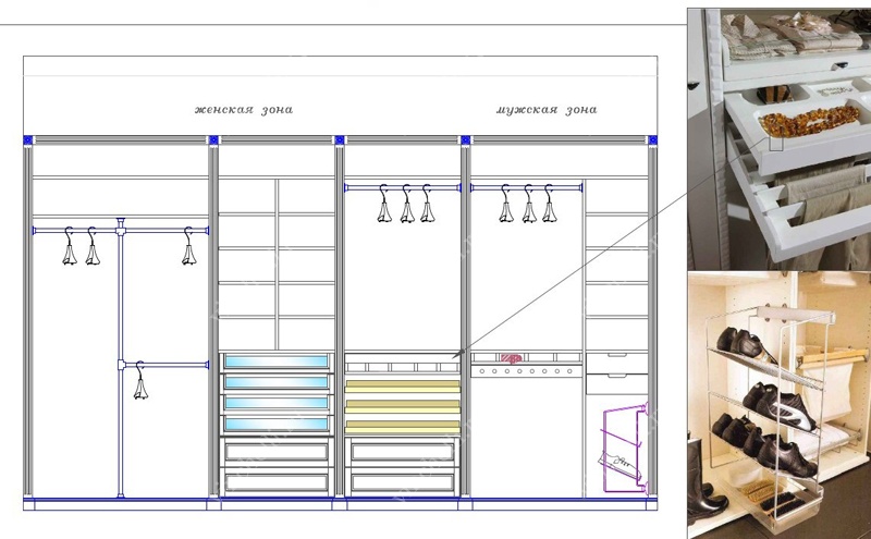 Ας ρίξουμε μια πιο προσεκτική ματιά στα πιο δημοφιλή και πρακτικά σχέδια που επιλέγονται συχνότερα για τη διευθέτηση των γκαρνταρόμπα.
