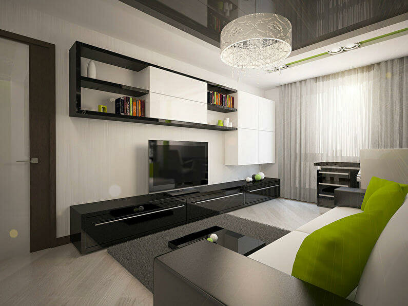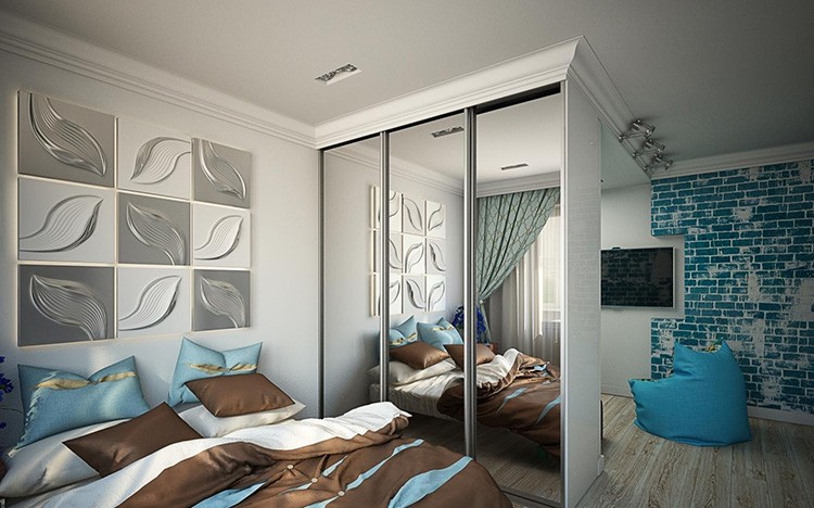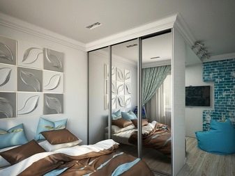 - Είναι δυνατή η πραγματοποίηση ζωνών σε ένα δωμάτιο μέσω μιας κατάλληλης διάταξης επίπλων. Για παράδειγμα, μπορείτε να διαχωρίσετε το σαλόνι από τον χώρο ύπνου μέσω μιας υψηλής, αλλά στενής γκαρνταρόμπας με πόρτες στραμμένες απευθείας στον χώρο ύπνου.