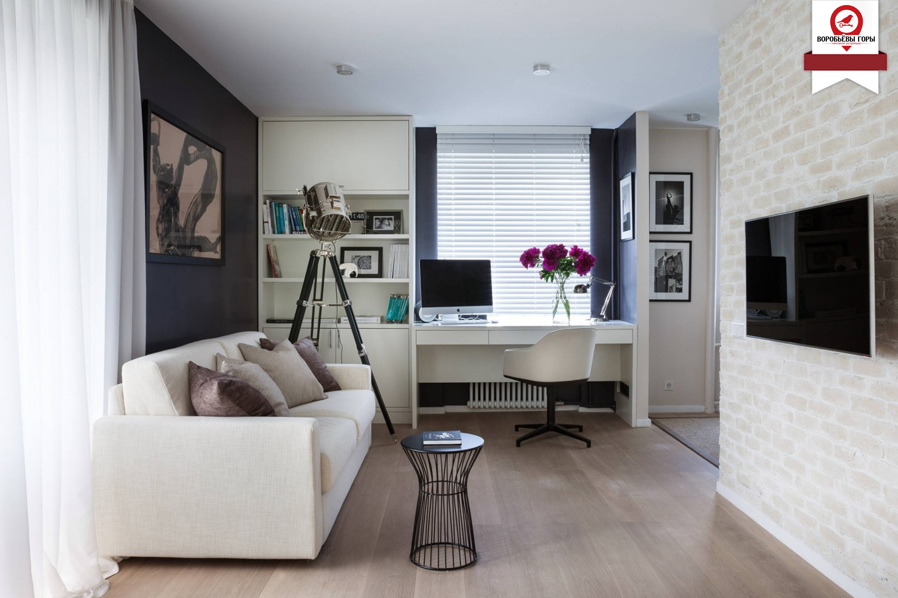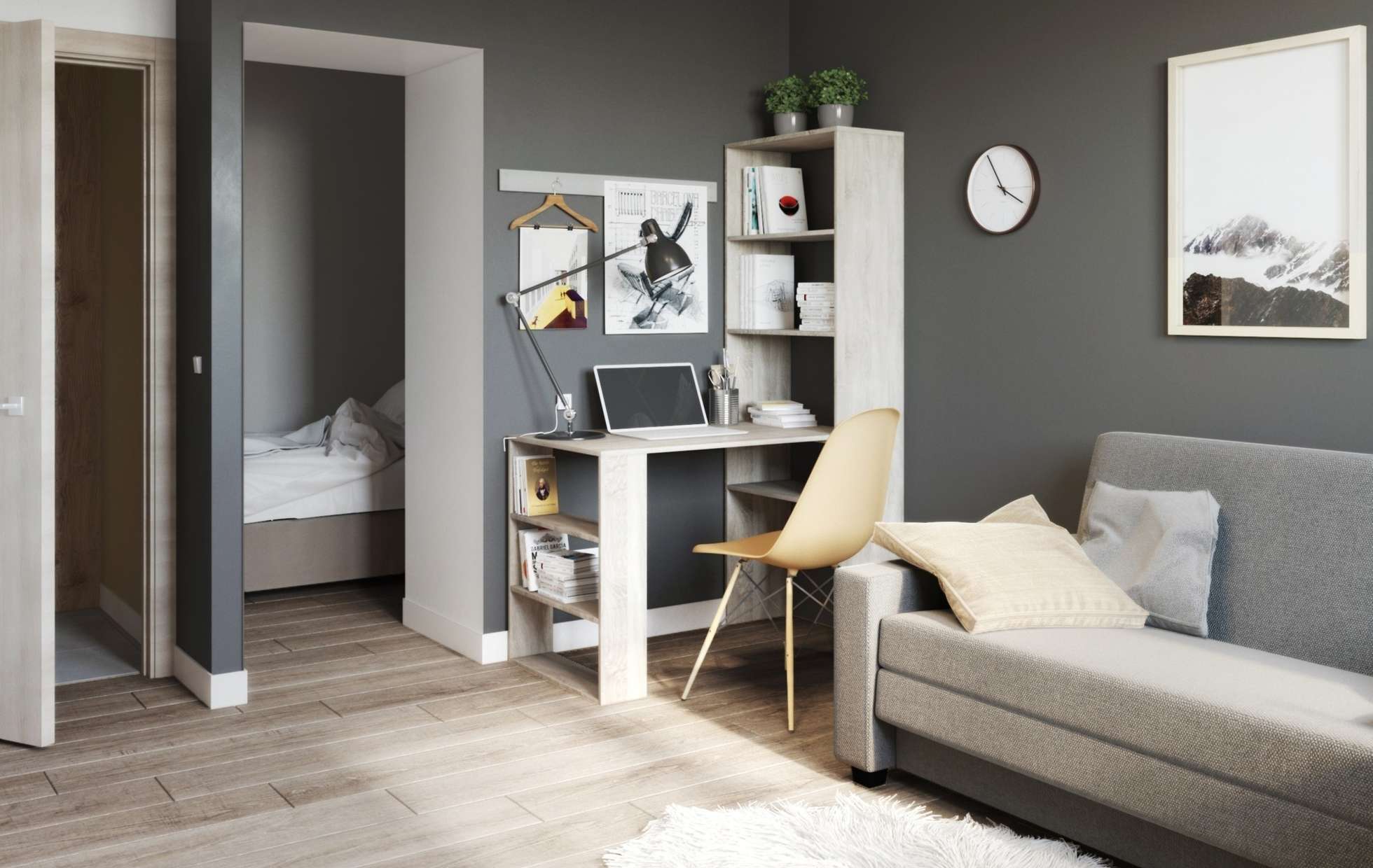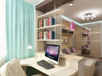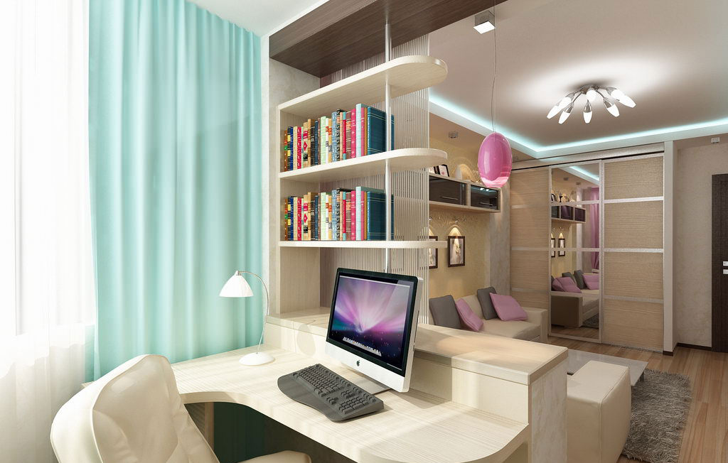 - Ξεχωρίστε τον χώρο εργασίας σε ένα διαμέρισμα ενός δωματίου ίσως μέσω ενός τραπεζιού ή μιας προσεγμένης βιβλιοθήκης.