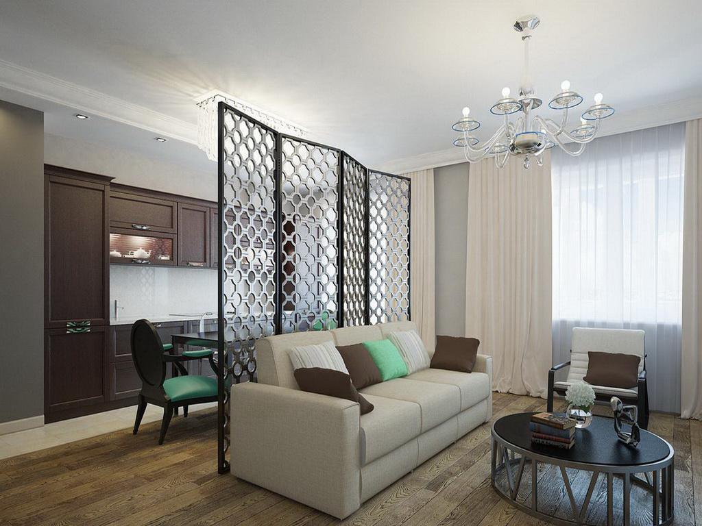 - Δεν είναι κακή λύση - σταθερές ή κινητές οθόνες, χωρίσματα. Τέτοια προϊόντα δεν λειτουργούν μόνο ως θεαματικά διαχωριστικά διαφορετικών ζωνών, αλλά και ως διακοσμητικά στοιχεία του εσωτερικού.