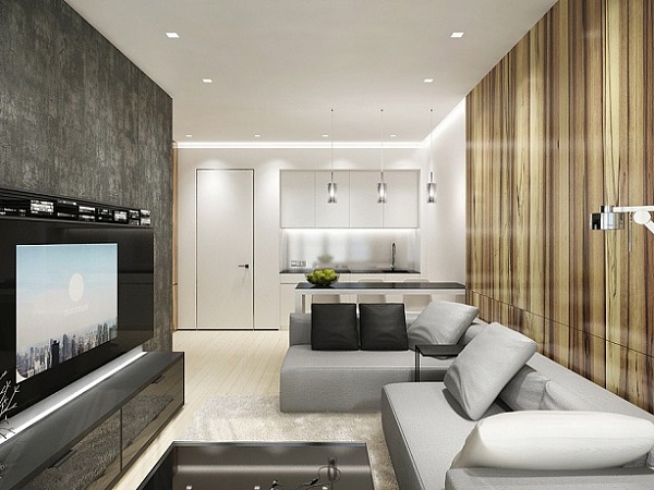 - Μινιμαλισμός. Ένα μοντέρνο στυλ που είναι ιδανικό για τη διακόσμηση ενός μικρού στούντιο διαμερίσματος. Με τον μινιμαλισμό, χρησιμοποιούνται μόνο τα απαραίτητα εξαρτήματα για τη διαρρύθμιση του χώρου. Δεν υπάρχει περιττή διακόσμηση και περιττά μικροπράγματα. Επικρατεί ένα ήρεμο μονόχρωμο φινίρισμα.