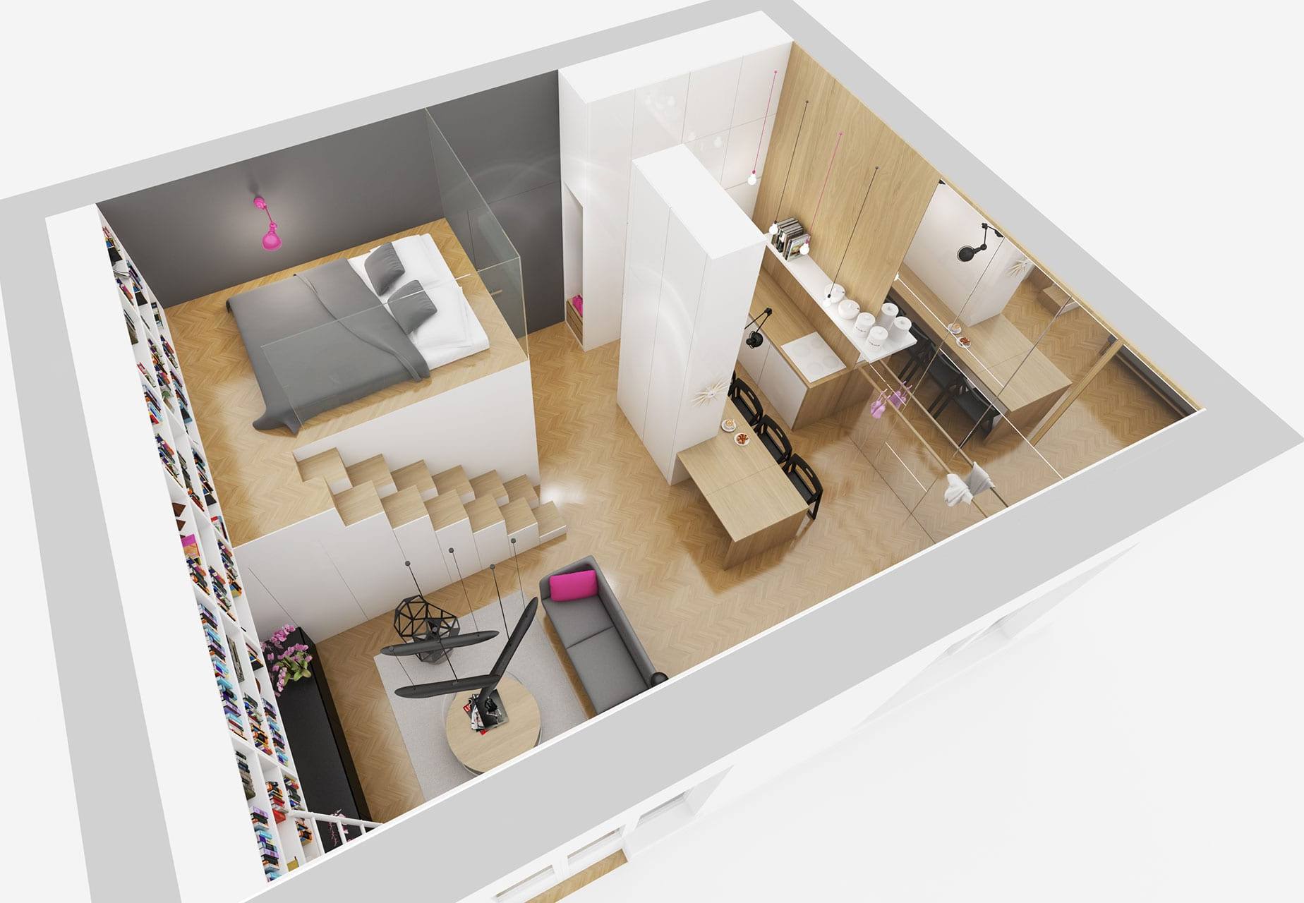 Σε συνθήκες μικρού χώρου διαβίωσης, είναι απαραίτητο να χωρίσετε τους διαθέσιμους χώρους σε ορισμένες λειτουργικές ζώνες. Πρέπει να σχεδιαστούν προσεκτικά και να μελετηθούν εκ των προτέρων.