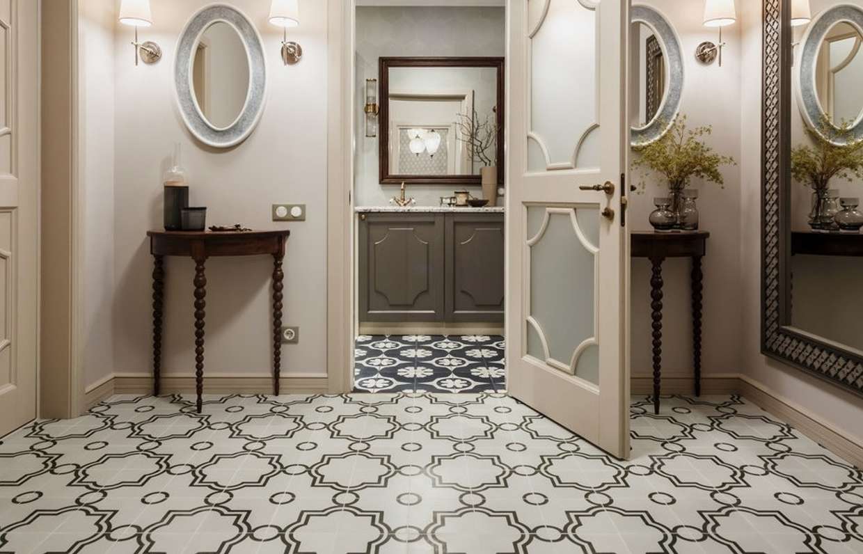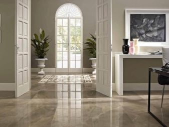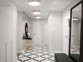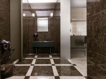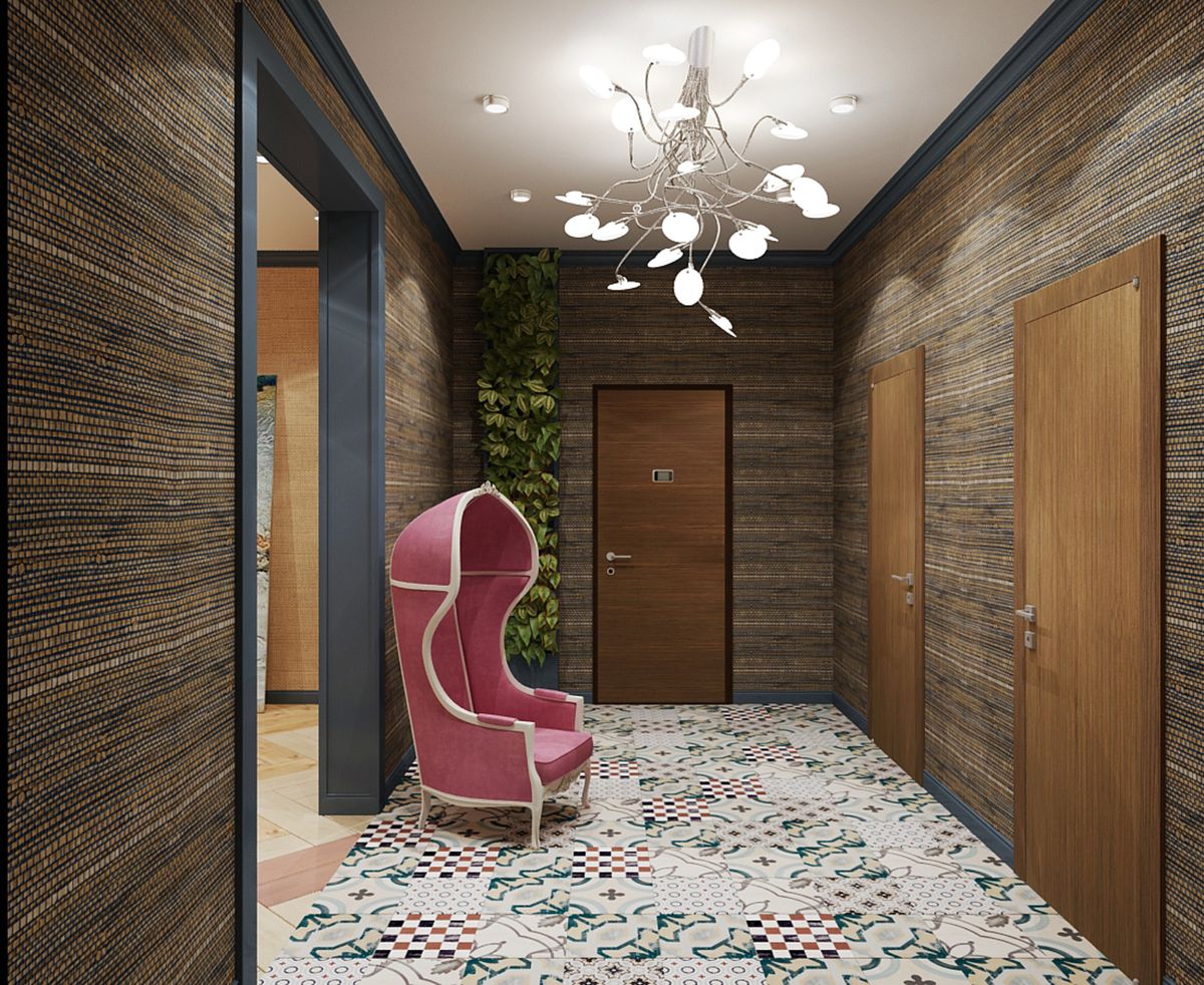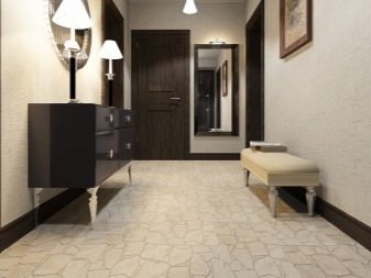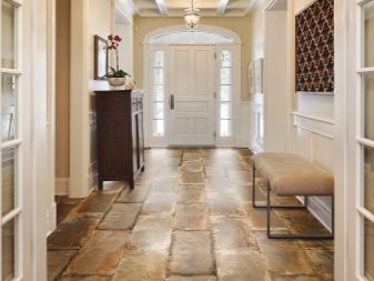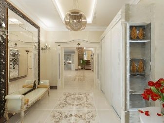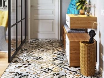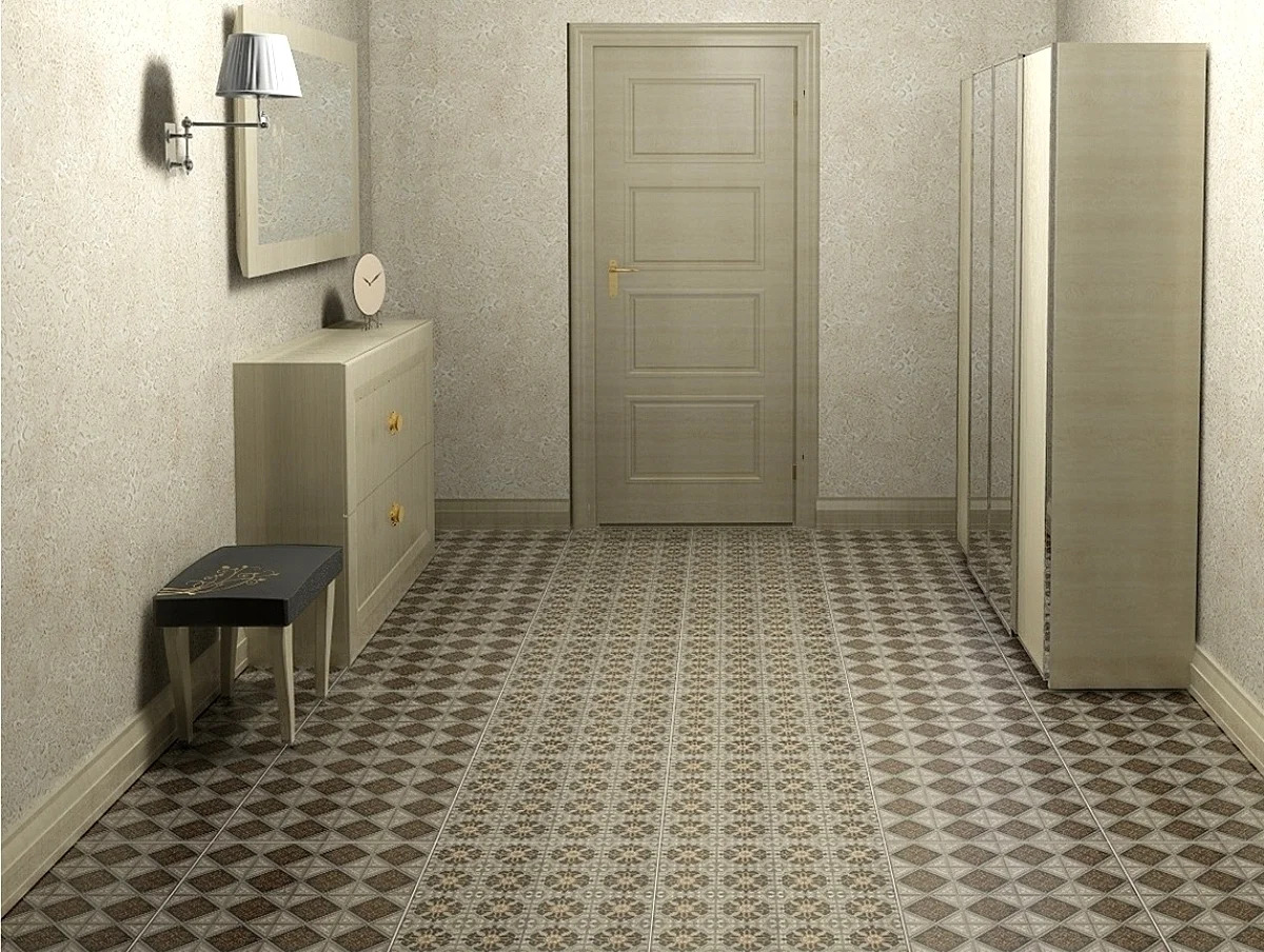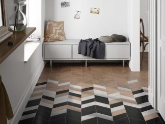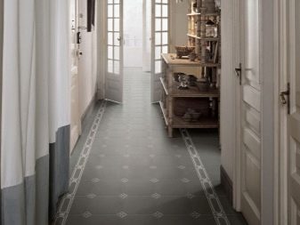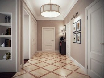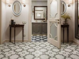 Για παράδειγμα, ο πίνακας στο κεντρικό τμήμα του δαπέδου φαίνεται πολύ πρωτότυπος, κατά μήκος των άκρων του υπάρχει μια διάταξη ψηφιδωτού. Το μοτίβο στο πάτωμα δεν πρέπει να είναι ασυμβίβαστο με το μοτίβο ή τα στερεά χρώματα στον τοίχο. Διαφορετικά, η συνολική εντύπωση της εικόνας που θα δείτε θα χαλάσει εντελώς. Έτσι, στο στυλ των κλασικών, χρησιμοποιούνται μαρμάρινα κεραμίδια. Εάν ο διάδρομος είναι διακοσμημένος προς ανατολική κατεύθυνση, τότε τα μοτίβα μπορεί να συνοδεύονται από μπούκλες που θυμίζουν ιερογλυφικά ή αραβικά γράμματα, εβραϊκά.