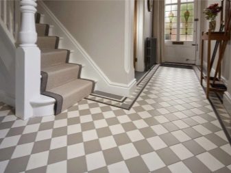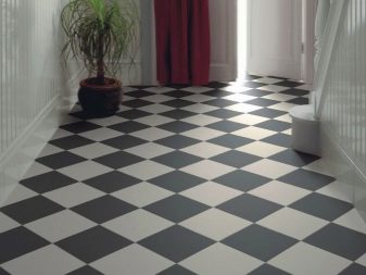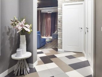 - "Σκάκι" - μια ακόμη απλούστερη ρουτίνα διάταξης. Προσελκύει το ενδιαφέρον των επισκεπτών, δίνει στη δημιουργημένη εικόνα κάποια φρεσκάδα και έχει οπτικό αντίκτυπο στα γεωμετρικά χαρακτηριστικά του διαδρόμου. Ο στενός διάδρομος φαίνεται ευρύτερος, αλλά η διαφορά στο πλάτος και το μήκος δεν είναι αμέσως αισθητή εδώ. Η υφή της σκακιέρας τοποθετείται επίσης χρησιμοποιώντας τη διαγώνια μέθοδο.