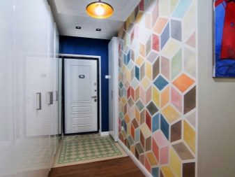 - Διαγώνιος... Η επένδυση με πλακάκια τοποθετείται σε μια συγκεκριμένη γωνία στα τοιχώματα του διαδρόμου. Λόγω αυτής της σειράς εμφάνισης, το σχέδιο υποδιαιρείται σε τμήματα σε σχήμα διαμαντιού. Μια ομοιόμορφη και μονότονη επίστρωση θα τονίσει ευνοϊκά το εσωτερικό ενός σπιτιού ή διαμερίσματος.