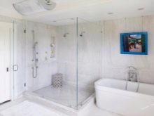 Πρακτικά δεν έχει νόημα ο εξοπλισμός ενός συνδυασμένου μπάνιου σε ένα διαμέρισμα πέντε δωματίων. Επίσης, δεν αξίζει να εξοικονομήσετε πολλά στις διαστάσεις της μπανιέρας ή του ντους. Μερικοί άνθρωποι συνδυάζουν με επιτυχία αυτά τα είδη υγιεινής στο ίδιο μπάνιο. Τα κρεμαστά ντουλάπια και οι μονάδες δαπέδου μπορούν επίσης να προταθούν με σιγουριά. Αυτό που δεν είναι λιγότερο σημαντικό, μην μειώνετε τον κλασικό σχεδιασμό των μπάνιων, στον οποίο κυριαρχεί το μπλε, το λευκό και το μαύρο.