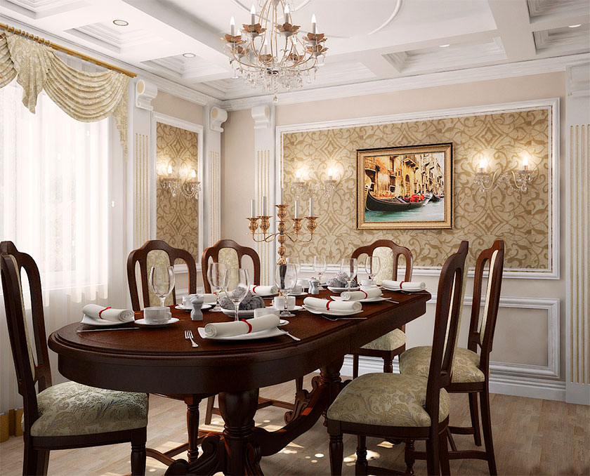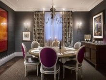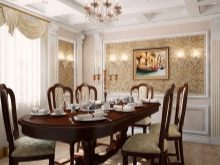 Το υψηλής ποιότητας εσωτερικό τέτοιων χώρων - τραπεζαρία, υπνοδωμάτιο και μελέτη - είναι επίσης εξαιρετικά σχετικό. Εδώ όλα πρέπει να είναι ήδη ρυθμισμένα για μέγιστη αρμονία και ηρεμία, επομένως οι παστέλ αποχρώσεις χρησιμοποιούνται συχνά στη διακόσμηση. Η τραπεζαρία είναι εξοπλισμένη όχι μόνο με τραπέζι, αλλά και με καρέκλες, συνήθως με μαλακή επένδυση. Με πιο λακωνικό σχεδιασμό, μπορείτε να χρησιμοποιήσετε καρέκλες σε μεταλλικό σκελετό. Αλλά τα πλαστικά είναι ελάχιστα αποδεκτά - υποσυνείδητα συσχετίζονται με ένα καλοκαιρινό καφέ αμέσως.