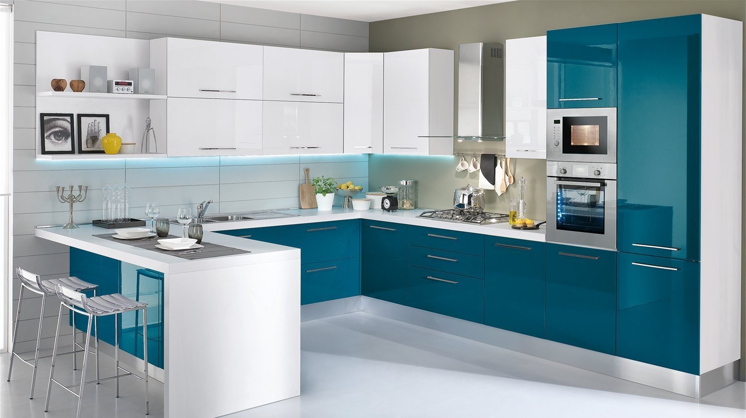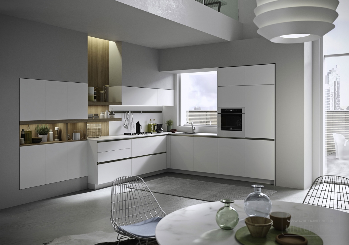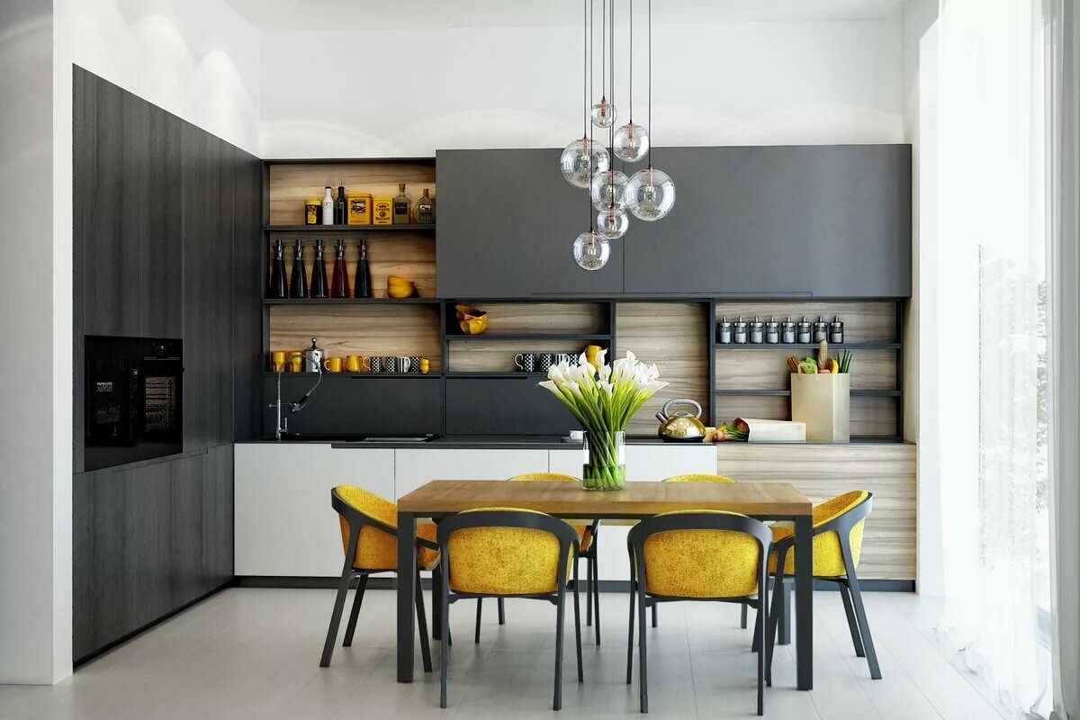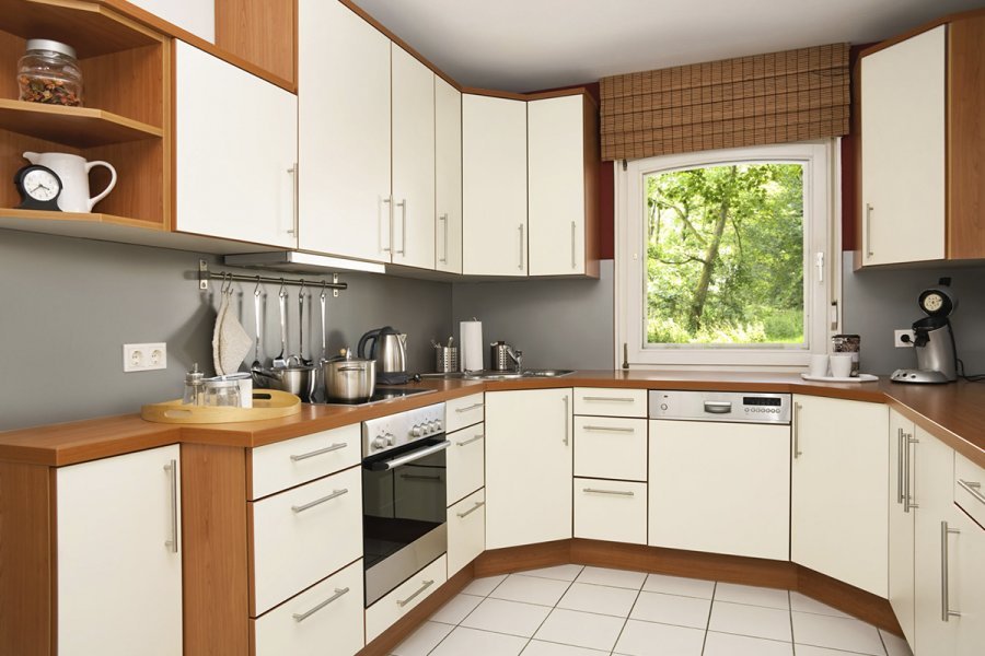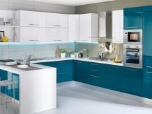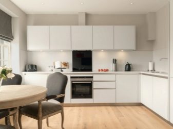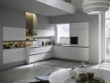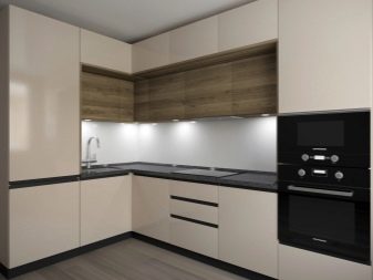Παίζει σημαντικό ρόλο ο παραδοσιακός κανόνας του τριγώνου εργασίας. Μεταξύ των δύο κορυφών του δεν πρέπει να υπάρχουν περισσότερα από δύο βήματα ή ένα χέρι. Το ύψος των επίπλων προσαρμόζεται ανάλογα με τις προτιμήσεις σας. Για το διακοσμητικό αποτέλεσμα των προσόψεων επίπλων, όχι μόνο το χρώμα τους είναι σημαντικό, αλλά και η υφή και τα χρησιμοποιημένα πλαίσια. Η επιλογή ανάμεσα σε γυαλιστερά και ματ αντικείμενα (επιφάνειες) καθορίζεται από την ισορροπία ομορφιάς και πρακτικότητας.