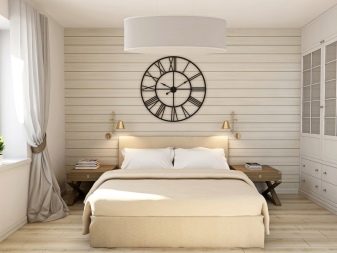 Είναι απολύτως χρήσιμο να κρεμάσετε ένα ρολόι εκεί. Είναι επιθυμητό να έχουμε βέλη, επειδή είναι πιο άνετα να τα κοιτάμε. Οι διακοσμήσεις υφασμάτων πρέπει να χρησιμοποιούνται χωρίς αποτυχία. Πυκνές κουρτίνες και / ή περσίδες είναι εγκατεστημένες στο παράθυρο. Χάρη σε αυτούς, ακόμη και ο φωτεινός ήλιος δεν θα επηρεάσει τον ύπνο.