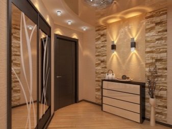 Για το διάδρομο, συνιστάται η επιλογή ανθεκτικά και χωρίς σήμανση υλικά φινιρίσματος. Θα πρέπει να είναι βαμμένα στο χρώμα που καθορίζεται από το στυλ του εσωτερικού. Αλλά και πάλι, οι όξινες αποχρώσεις είναι ανεπιθύμητες. Οι αρχικοί λαμπτήρες που εκτελούν επίσης την άμεση λειτουργία τους είναι κατάλληλοι ως αντικείμενα διακόσμησης.