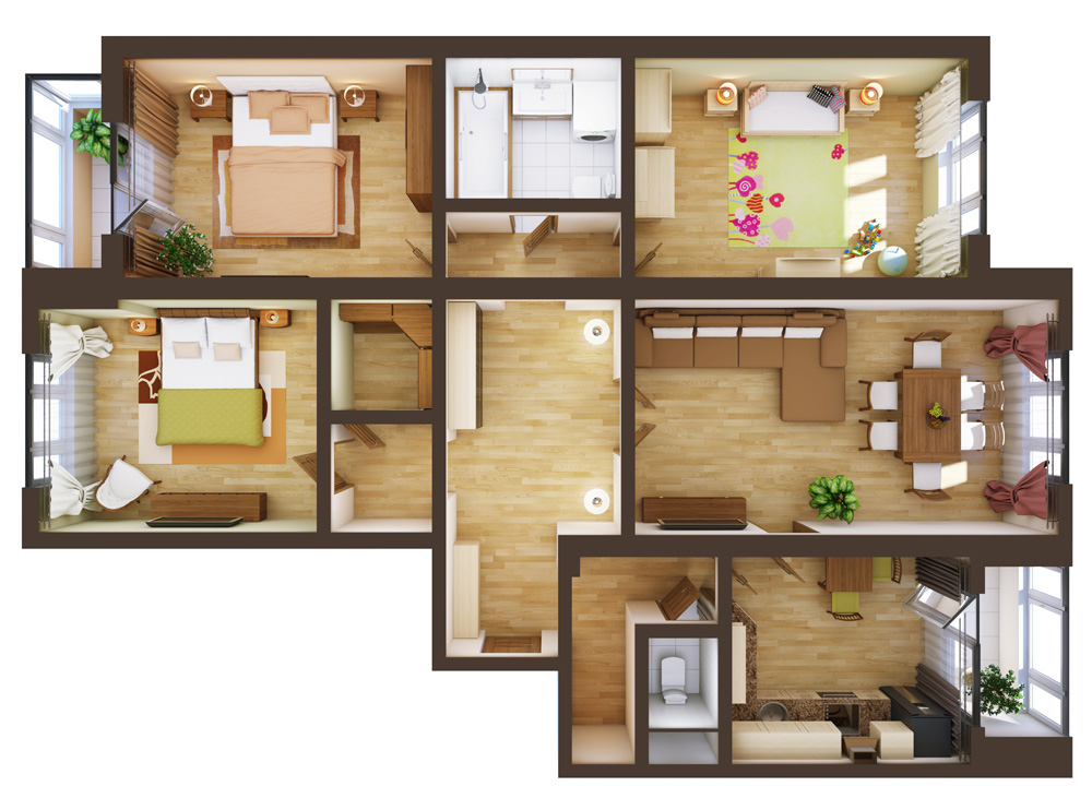 Ετσι, δεν μπορείτε να σπάσετε φέροντες τοίχους, να εξοπλίσετε ένα μπάνιο πάνω από τα καθιστικά. Υπάρχουν μια σειρά άλλων, όχι τόσο προφανών κανόνων. Οι περισσότεροι σχεδιαστές συνιστούν να επισημάνετε με σαφήνεια ένα ή άλλο σημασιολογικό κέντρο του δωματίου και να χτίσετε όλα τα άλλα γύρω του. Οι λειτουργικές περιοχές επισημαίνονται όσο το δυνατόν σαφέστερα. Όταν ζει μια μεγάλη οικογένεια, εξοπλίζουν 2 ή και 3 μπάνια.