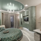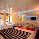 Οι τεντωμένες οροφές στο υπνοδωμάτιο όχι μόνο φαίνονται ελκυστικές, αλλά επίσης μειώνουν σημαντικά το χρόνο για εργασίες επισκευής. Επιπλέον, η χρήση τους καθιστά δυνατή την οπτική διόρθωση του ύψους του δωματίου, την παροχή της απαραίτητης ποσότητας φωτός και τη δημιουργία μιας ζεστής ατμόσφαιρας στο διαμέρισμα.