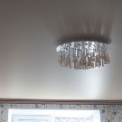 Όταν χρησιμοποιείτε τεντωμένη οροφή, ο φωτισμός είναι σημαντικός, καθώς εξαρτάται από το πώς ακριβώς θα φαίνεται το προϊόν. Ως στοιχείο βάσης χρησιμοποιείται ένας πολυέλαιος, ο οποίος βρίσκεται στο κεντρικό τμήμα του δωματίου. Η θέση αυτού του επίπλου πρέπει να είναι τέτοια ώστε οι ακτίνες να πέφτουν απευθείας στην οροφή. Πρόσφατα, οι προβολείς ήταν αρκετά δημοφιλείς, η χρήση των οποίων σας επιτρέπει να κατανέμετε ομοιόμορφα τις πηγές φωτός στην οροφή για να επιτύχετε τη μέγιστη αρμονία στο δωμάτιο.