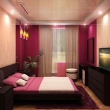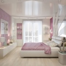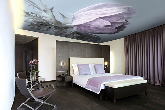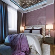 Κατά τη διαδικασία επιλογής τεντωμένης οροφής για υπνοδωμάτιο, είναι απαραίτητο να ληφθεί υπόψη ο ρυθμός της ζωής και το στυλ του δωματίου. Οι περισσότεροι σχεδιαστές συμβουλεύουν τη χρήση απαλών αποχρώσεων για τη διακόσμηση ενός τέτοιου δωματίου, καθώς και λείες γραμμές, οι οποίες διακρίνονται από το ηρεμιστικό τους αποτέλεσμα. Αυτός είναι ο λόγος για τον οποίο η πιο κατάλληλη επιλογή είναι να εγκαταστήσετε μια τεντωμένη οροφή σε ματ στυλ σε ανοιχτόχρωμο συνδυασμό χρωμάτων. Ωστόσο, υπάρχουν άνθρωποι που προτιμούν συναρπαστικά χρώματα και προτιμούν το γραφικό σχέδιο στο εσωτερικό. Για τέτοιους ανθρώπους, μπορείτε να πάρετε έντονα κόκκινα ή ροζ σχέδια που προσελκύουν τη μέγιστη προσοχή.