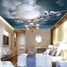 - Μια μπλε τεντωμένη οροφή ορθογώνιου σχήματος, κατασκευασμένη με τη μορφή του ουρανού. Θα είναι μια εξαιρετική λύση για ένα δωμάτιο εφήβου 10 τ. Μ.
