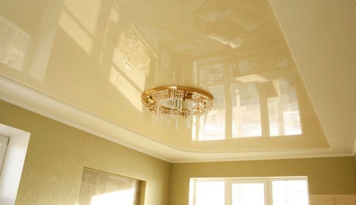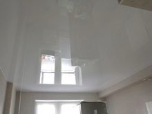 Αυτά τα υλικά είναι εντελώς λεία στην αφή και διακρίνονται από το λαμπερό αποτέλεσμα τους. Το κύριο χαρακτηριστικό μιας τέτοιας επιφάνειας είναι ότι αντανακλά καλά το φως, με αποτέλεσμα μια καθρέφτη οροφή. Επιπλέον, όσο πιο σκούρο είναι το χρώμα, τόσο μεγαλύτερη θα είναι η αντανάκλαση του φωτός.