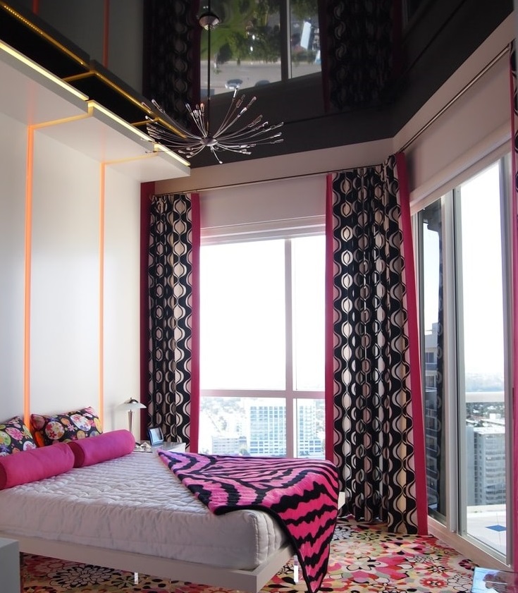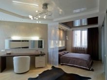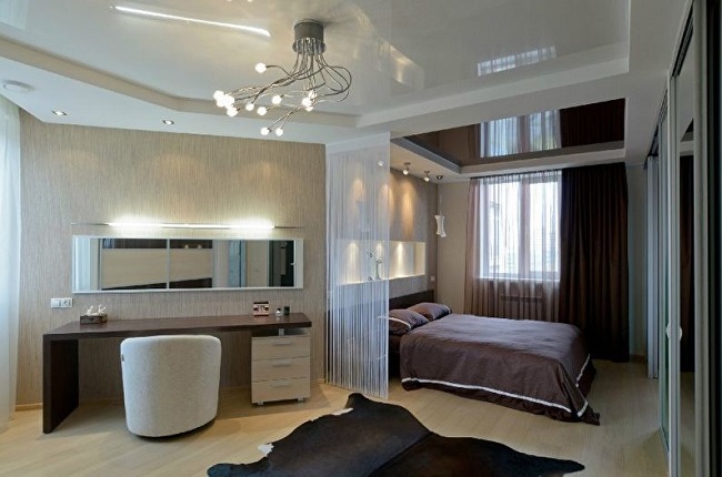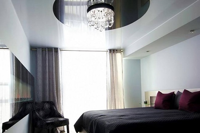 Τα γυαλιστερά ταβάνια φαίνονται αρκετά κομψά και ακριβά και συμβάλλουν επίσης στην οπτική αύξηση του χώρου, η οποία είναι σημαντική για μικρά υπνοδωμάτια. Το κύριο μειονέκτημα είναι ότι τέτοιοι καμβάδες μπορούν να ερεθίσουν άτομα με ευαισθησία στο φως, οπότε είναι καλύτερα να μην τα χρησιμοποιείτε στο υπνοδωμάτιο για τέτοιους ιδιοκτήτες.