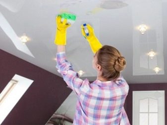 Είναι σπάνια απαραίτητο να καθαρίσετε τέτοια προϊόντα, καθώς τα χρησιμοποιούμενα υλικά είναι κυρίως διάσημα για τις αντιστατικές τους ιδιότητες και δεν απορροφούν υγρασία. Αυτά τα προϊόντα που είναι εγκατεστημένα στην κουζίνα ή στο διάδρομο απαιτούν τη μεγαλύτερη προσοχή. Αυτά τα δωμάτια χαρακτηρίζονται από αυξημένη πιθανότητα μόλυνσης, επομένως, τέτοιες οροφές θα πρέπει να σκουπίζονται από καιρό σε καιρό. Ανεξάρτητα από το πόσο καλή είναι η κουκούλα τοποθετημένη πάνω από τη σόμπα, κατά καιρούς εμφανίζονται ίχνη αιθάλης στο ταβάνι. Ωστόσο, το καλό με την τεντωμένη οροφή είναι ότι δεν είναι δύσκολο να σκουπίσουμε μια τέτοια μόλυνση.