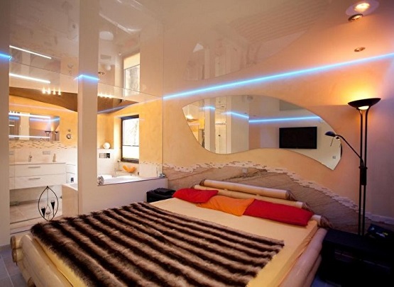 Το υπνοδωμάτιο είναι ένα δωμάτιο στο οποίο θέλετε να χαλαρώσετε και να αποκτήσετε δύναμη για την εργάσιμη ημέρα. Αυτός είναι ο λόγος για τον οποίο επιβάλλονται ειδικές απαιτήσεις σε τεντωμένες οροφές για ένα υπνοδωμάτιο, μεταξύ των οποίων μπορούν να διακριθούν τα ακόλουθα.