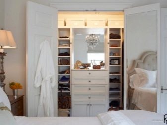 Με την προϋπόθεση ότι πρόκειται για γκαρνταρόμπα, πρέπει να σκεφτείτε ένα σύστημα αποθήκευσης, ώστε να είναι βολικό να χρησιμοποιείτε όλα όσα χρειάζεστε. Κρεμάστρες, ράφια, ντουλάπια, σεντούκια - όλα αυτά θα σας φανούν χρήσιμα. Στο ίδιο το καμαρίνι, θα είναι χρήσιμο να τοποθετήσετε έναν μεγάλο καθρέφτη, μια πολυθρόνα και εάν υπάρχει επιπλέον χώρος, ένας μικρός καναπές.