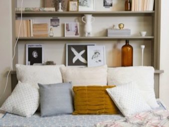 Είναι καλύτερα να διακοσμήσετε τους τοίχους μιας τέτοιας θέσης με άλλο υλικό, διαφορετικό από αυτό που χρησιμοποιείται στο δωμάτιο. Μπορεί να είναι ταπετσαρία με ευαίσθητα χρώματα, γύψο, ταπετσαρία φωτογραφιών με ευχάριστο τοπίο, υφασμάτινη ταπετσαρία, κουρτίνα.Ένα όμορφο κλινοσκεπάσματα και μαξιλάρια θα χρησιμεύσουν ως επιπλέον διακοσμητικό στοιχείο.