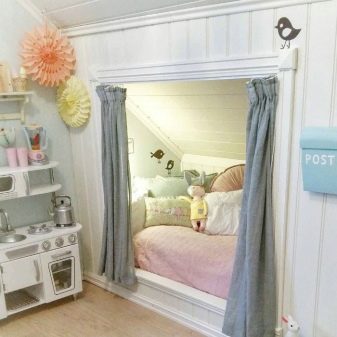 Ένας τέτοιος χώρος μπορεί να κλείσει έτσι ώστε το φως από το κύριο δωμάτιο να μην διεισδύσει, μόνο με μια κουρτίνα ή μια λεπτή οθόνη. Αυτό θα σας επιτρέψει να ακούτε πάντα το παιδί.