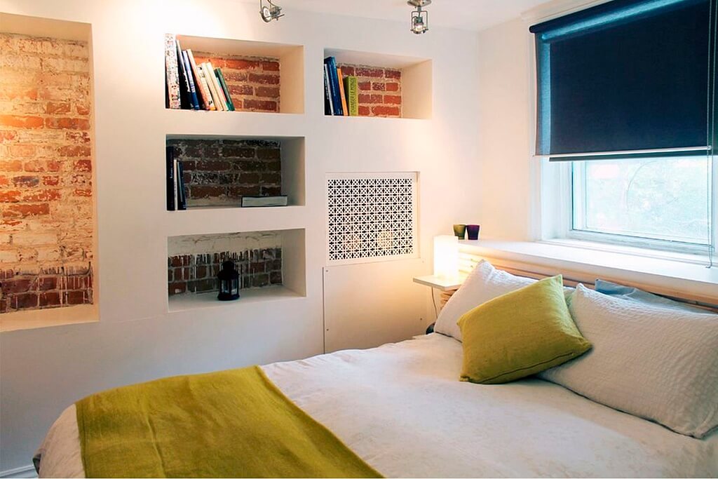 - Εάν η κόγχη είναι μικρή και βρίσκεται στον τοίχο, μπορείτε επίσης να χρησιμοποιήσετε αυτόν τον χώρο με σύνεση, τοποθετώντας εκεί, για παράδειγμα, ράφια με βιβλία.